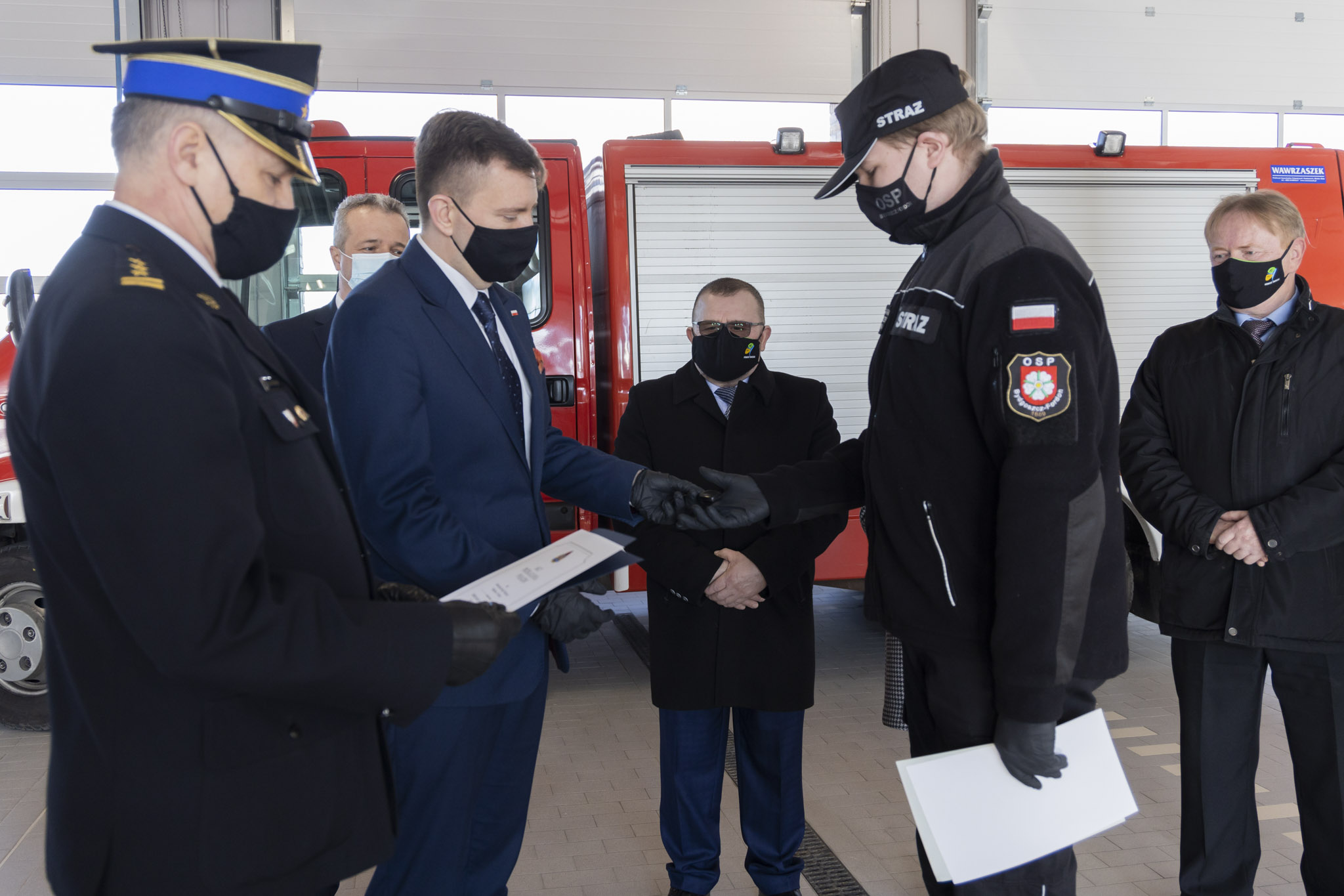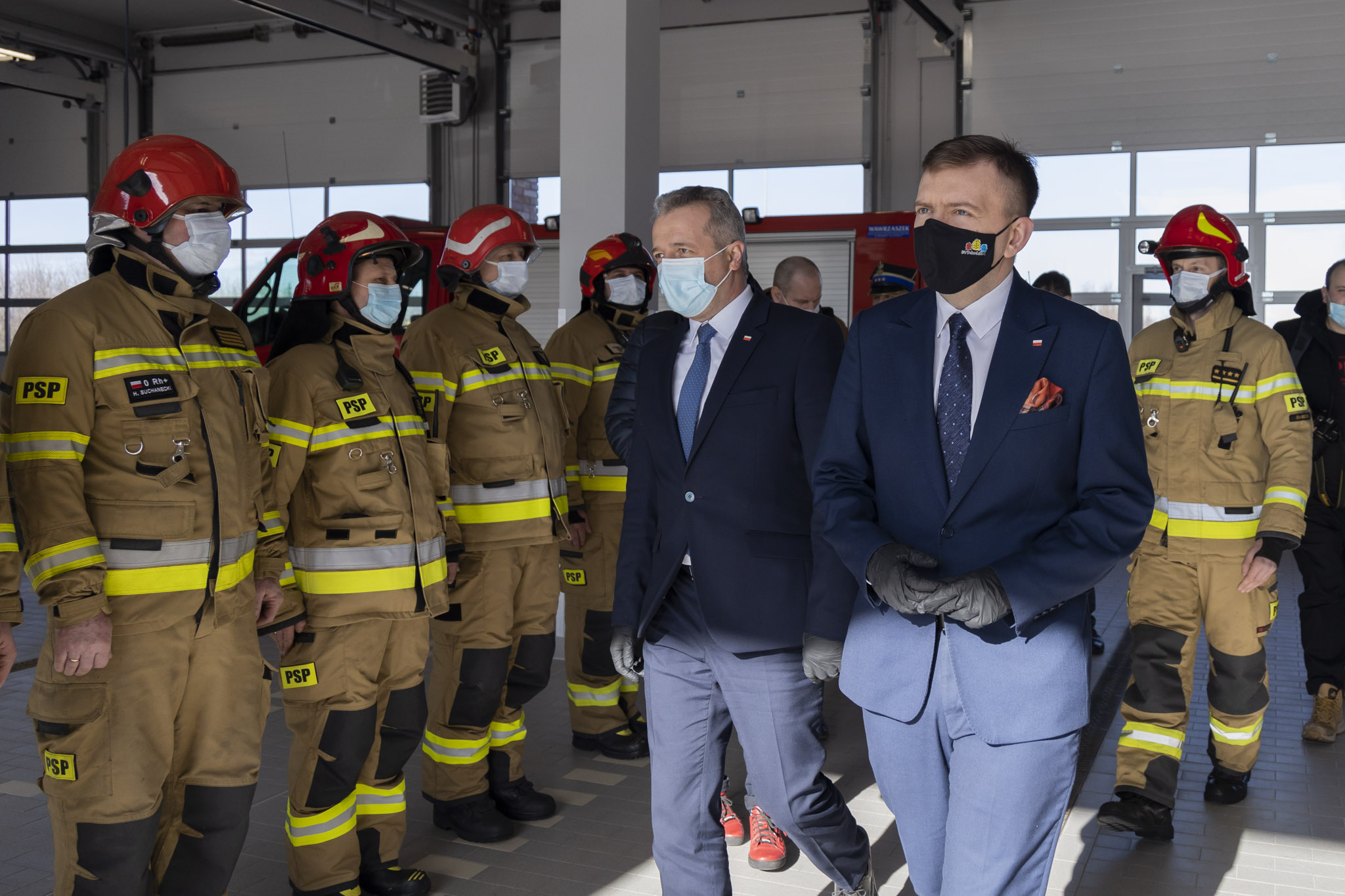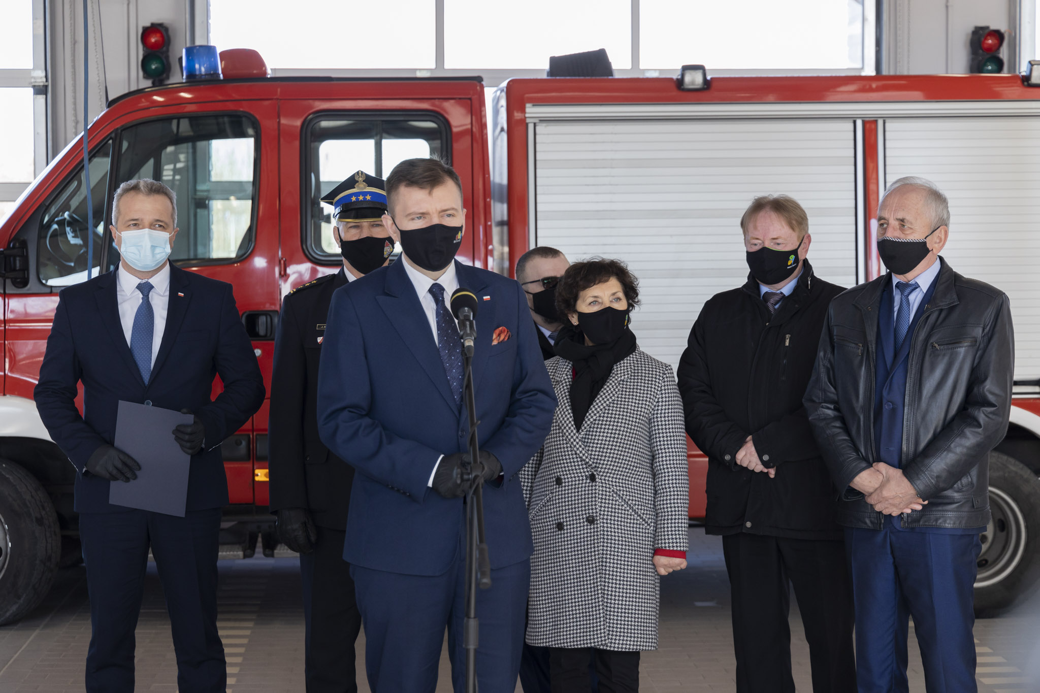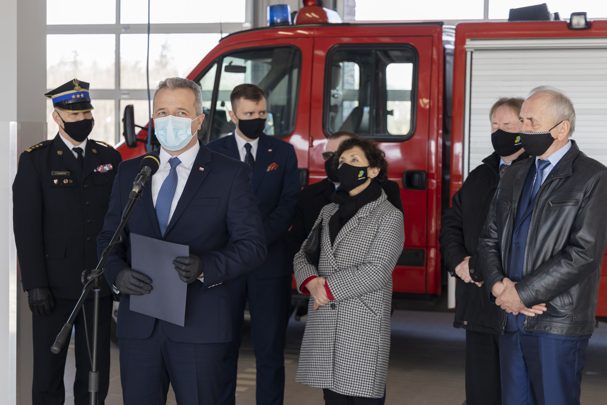 - Nie byłoby tego dzisiejszego wydarzenia, gdyby nie szereg osób, które były w to zaangażowane i za to chciałbym im wszystkim bardzo serdecznie podziękować. Należy tutaj wymienić samo zaangażowanie Państwowej Straży Pożarnej i pana komendanta. Jednak przede wszystkim wspomnieć należy pana wojewodę Mikołaja Bogdanowicza, który z wielką determinacją o tę inwestycję zabiegał. Bardzo serdecznie panu wojewodzie za to dziękuję – mówił minister Schreiber. - Są też osoby, które nie były na pierwszym planie, ale zawsze nas bardzo dopingują do pracy i bardzo mocno wspierają. To są lokalni samorządowcy, radni. Dziękuję bardzo serdecznie, przede wszystkim panu Grzegorzowi Goralowi, bo bez ich zaangażowania do tego wszystkiego by nie doszło. Bardzo państwu dziękuję i gratuluję. Pragnę zapewnić, że będziemy w dalszym ciągu wspierać, jak to tylko możliwe, Państwową Straż Pożarną i wszystkie jej działania – dodał.