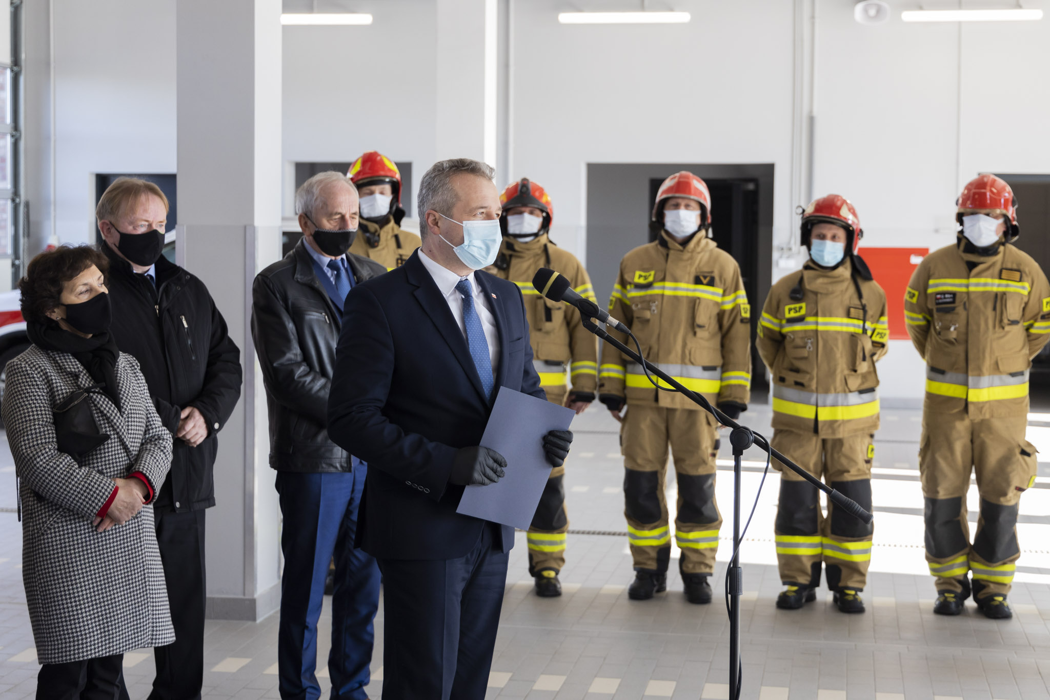 - Powiat świecki bardzo długo czekał na tę bardzo potrzebną inwestycję. Serdecznie gratuluję Państwowej Straży Pożarnej i wszystkim osobom, które były w ten proces zaangażowane. Ta inwestycja, warta przeszło 14 milionów złotych, jest tutaj bardzo potrzebna – mówił wojewoda. – Tak jak wspomniał pan minister, środki na tę inwestycję pochodziły przede wszystkim z rządowej ustawy modernizacyjnej, ale również z budżetu wojewody przez ostatnich kilka lat. Udało się dokończyć tę inwestycję dzięki wsparciu ministra Łukasza Schreibera, z rezerwy pana premiera Mateusza Morawieckiego – dodał przedstawiciel rządu w województwie.