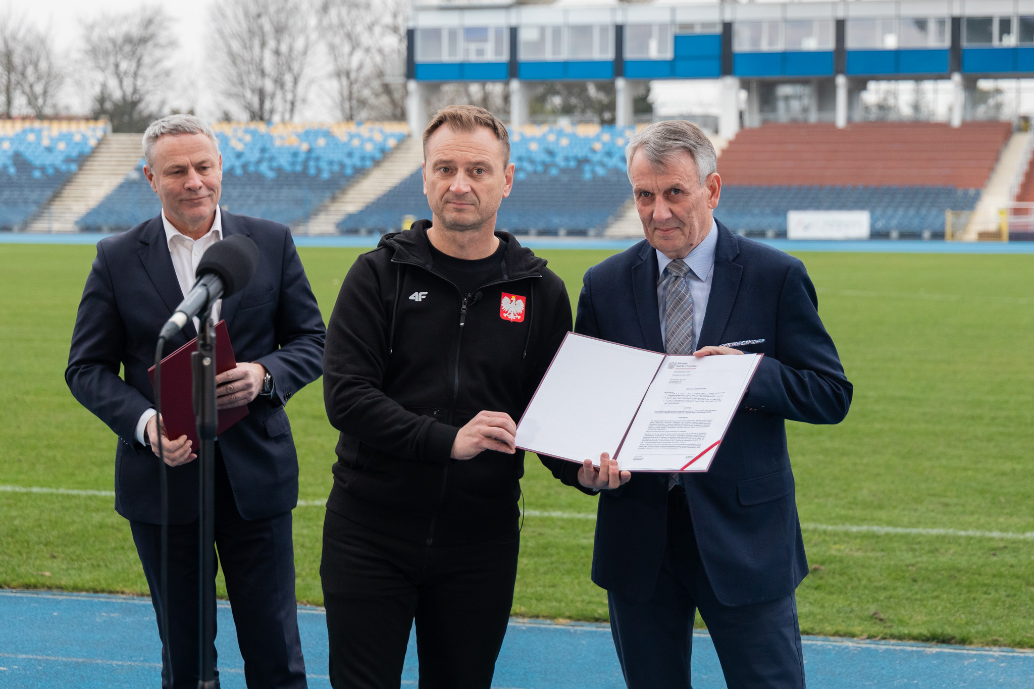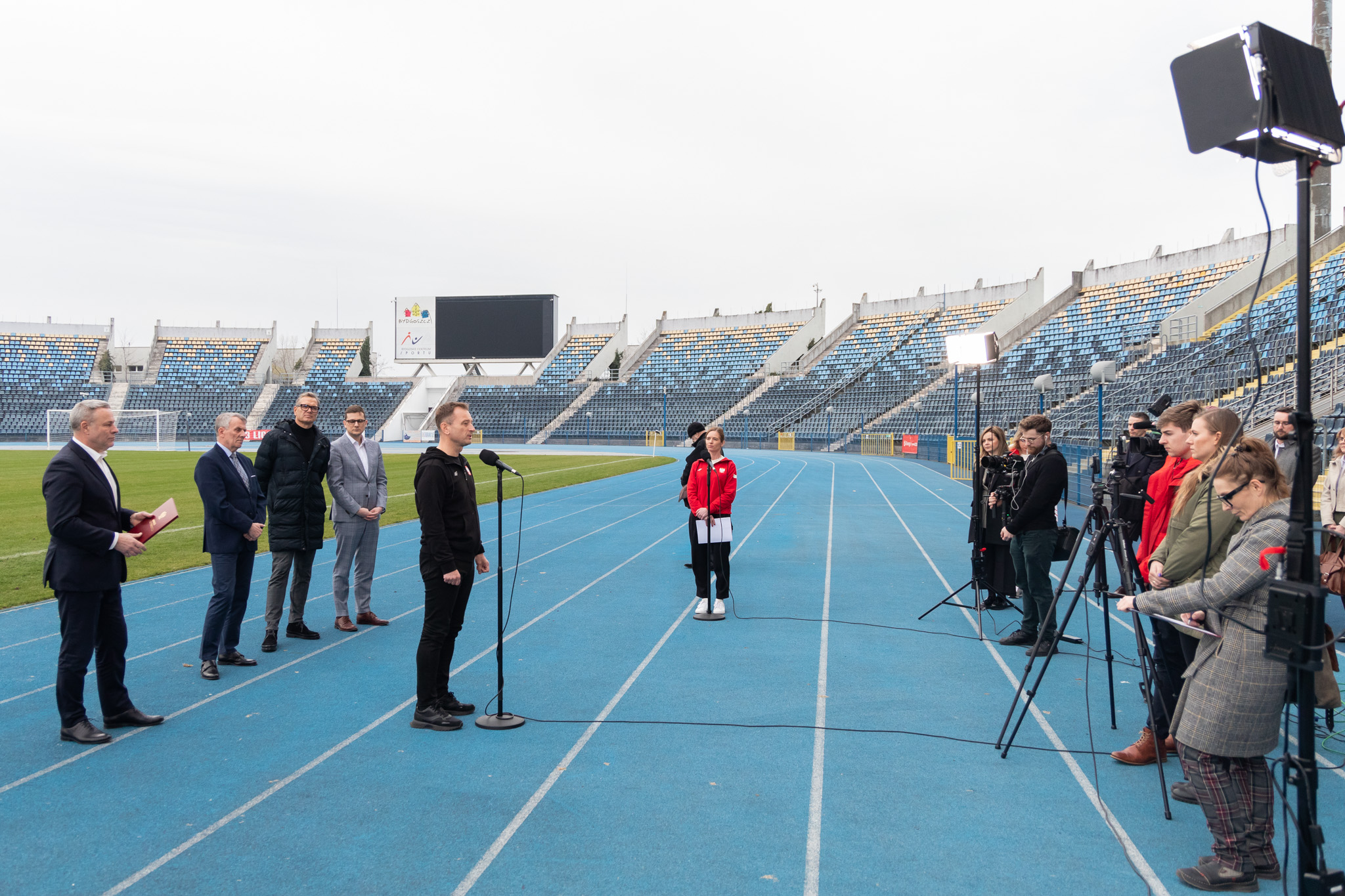 Podczas konferencji prasowej Minister Sławomir Nitras wraz z Wojewodą Michałem Sztyblem i Prezydentem Bydgoszczy Rafałem Bruskim wręczyli roczne stypendia sportowe w ramach Programu Team 100 Trener. Trafiły one do Wiesława Rakowskiego i Iwony Baumgart.
