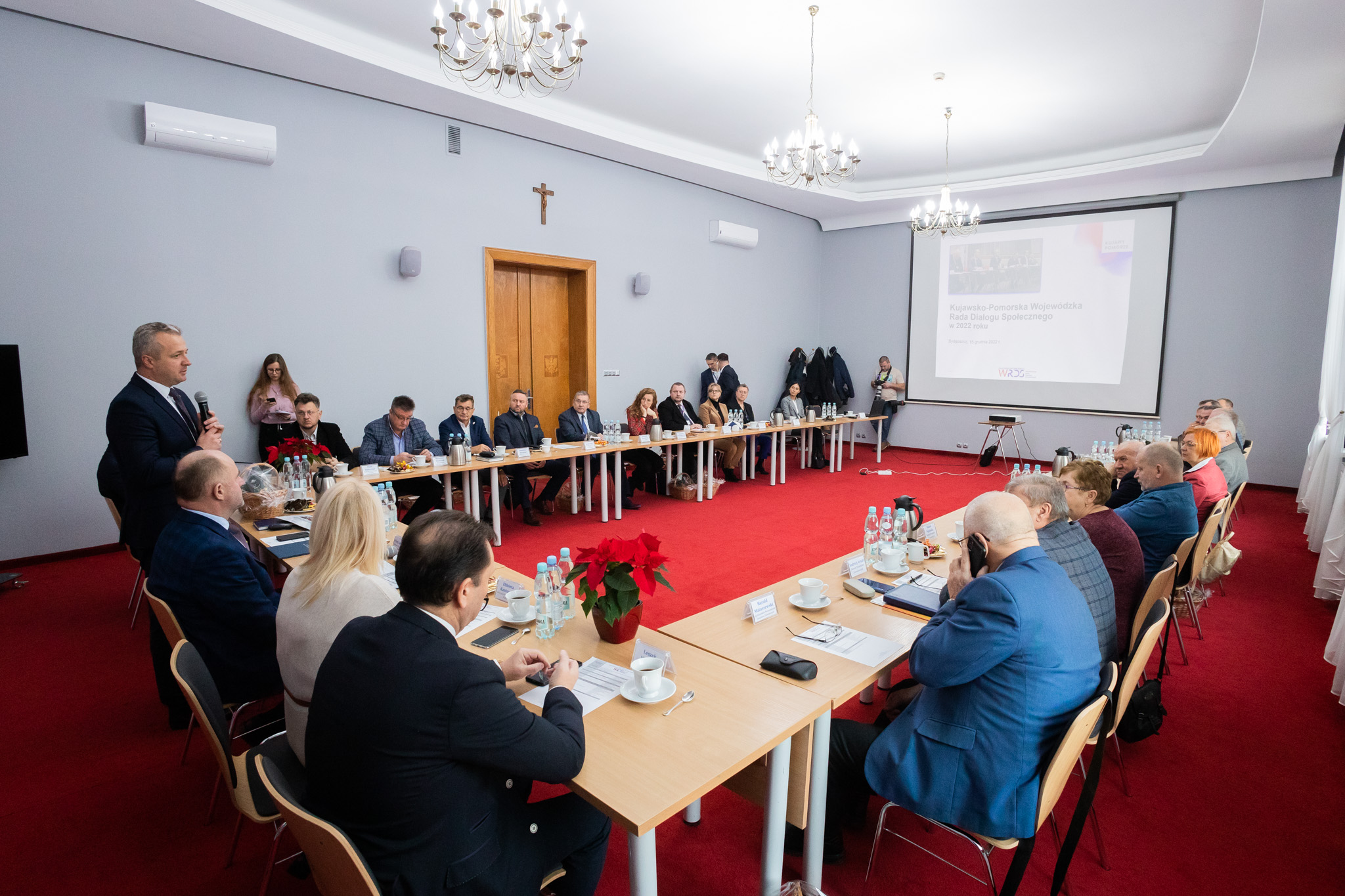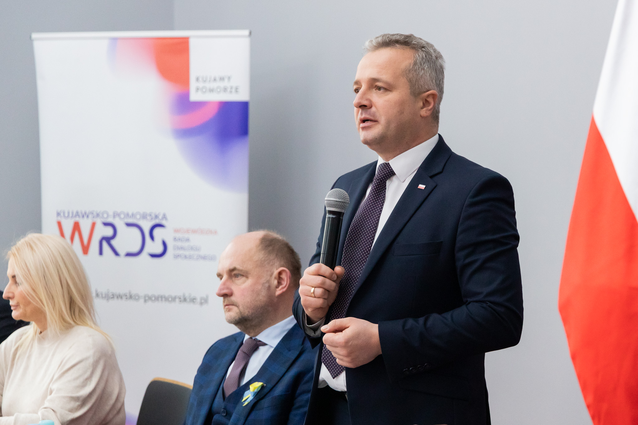 Marszałek Województwa Kujawsko-Pomorskiego Piotr Całbecki przejmując przewodnictwo od Wojewody Kujawsko-Pomorskiego podziękował Mikołajowi Bogdanowiczowi za kierowanie pracami WRDS w 2022 r. Podkreślił, że dzięki wspólnym wysiłkom wszystkich członków prezydium i rady – mimo niełatwego okresu – była to bardzo efektywna współpraca.