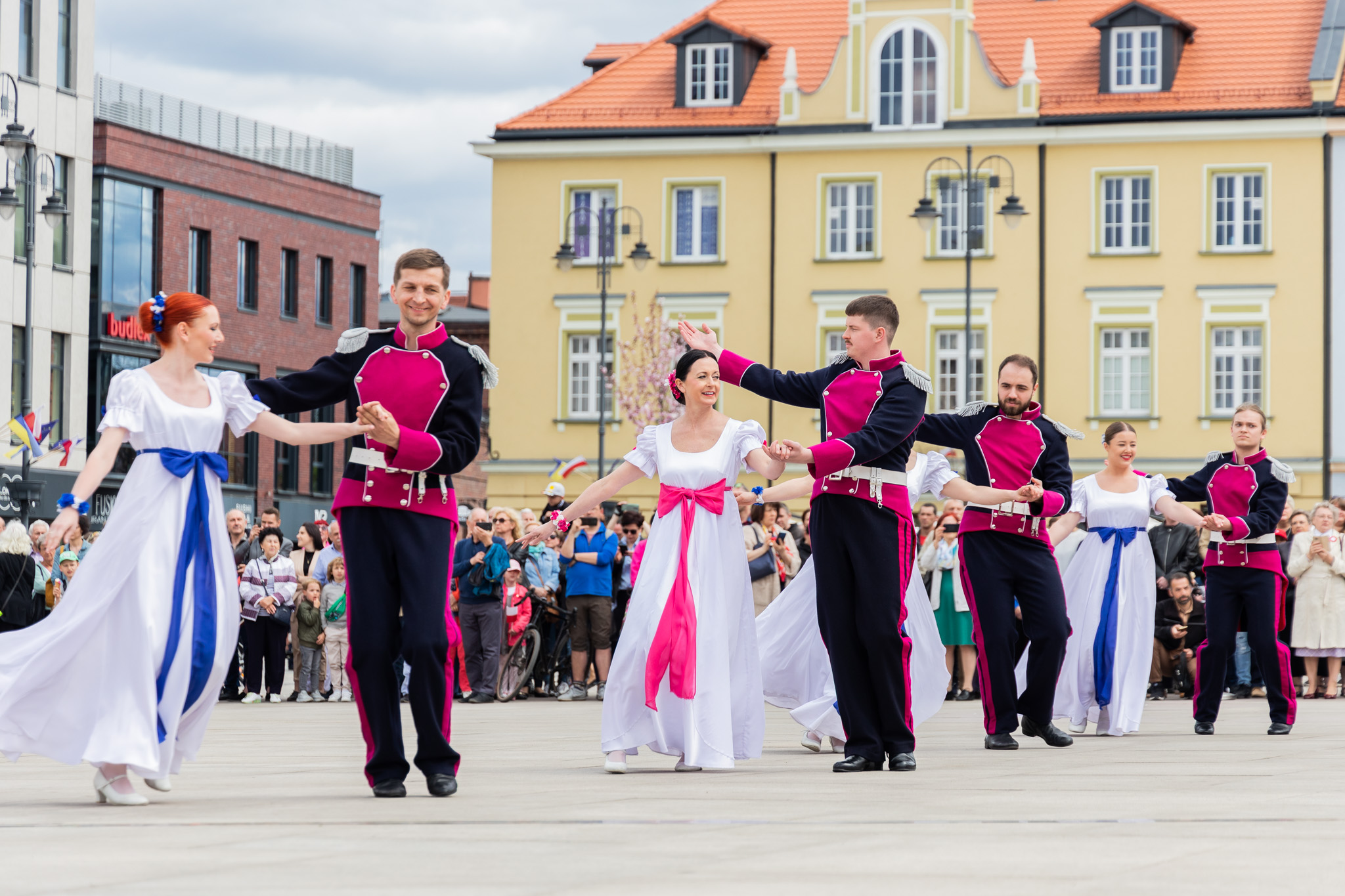 Uroczystości na Starym Rynku zwieńczył wspólnie zatańczony Polonez, którego poprowadził zespół Pieśni i Tańca Ziemia Bydgoska.