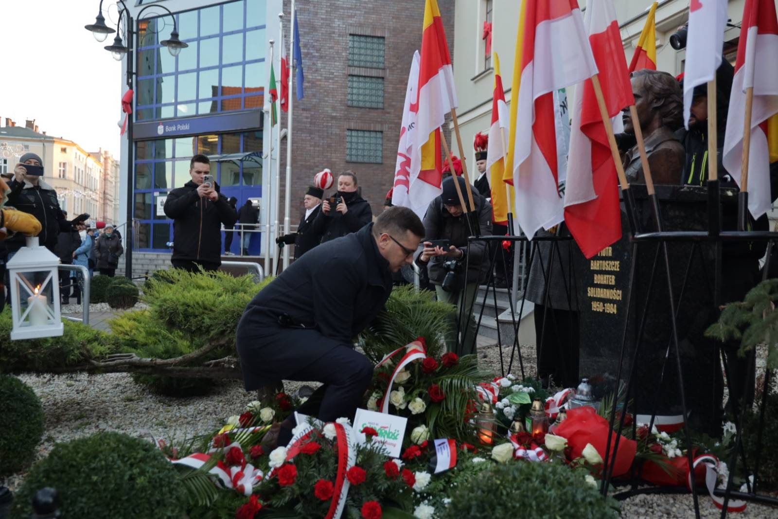 Dziękujemy przedstawicielom władz państwowych i samorządom wszystkich szczebli, reprezentantom instytucji z miasta i regionu, dziękujemy Wam wszystkim za to, że dzisiaj, w dniu pamięci ofiar stanu wojennego jesteśmy tutaj razem.