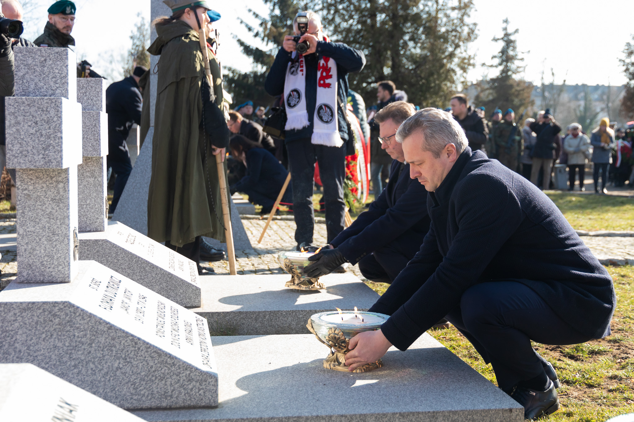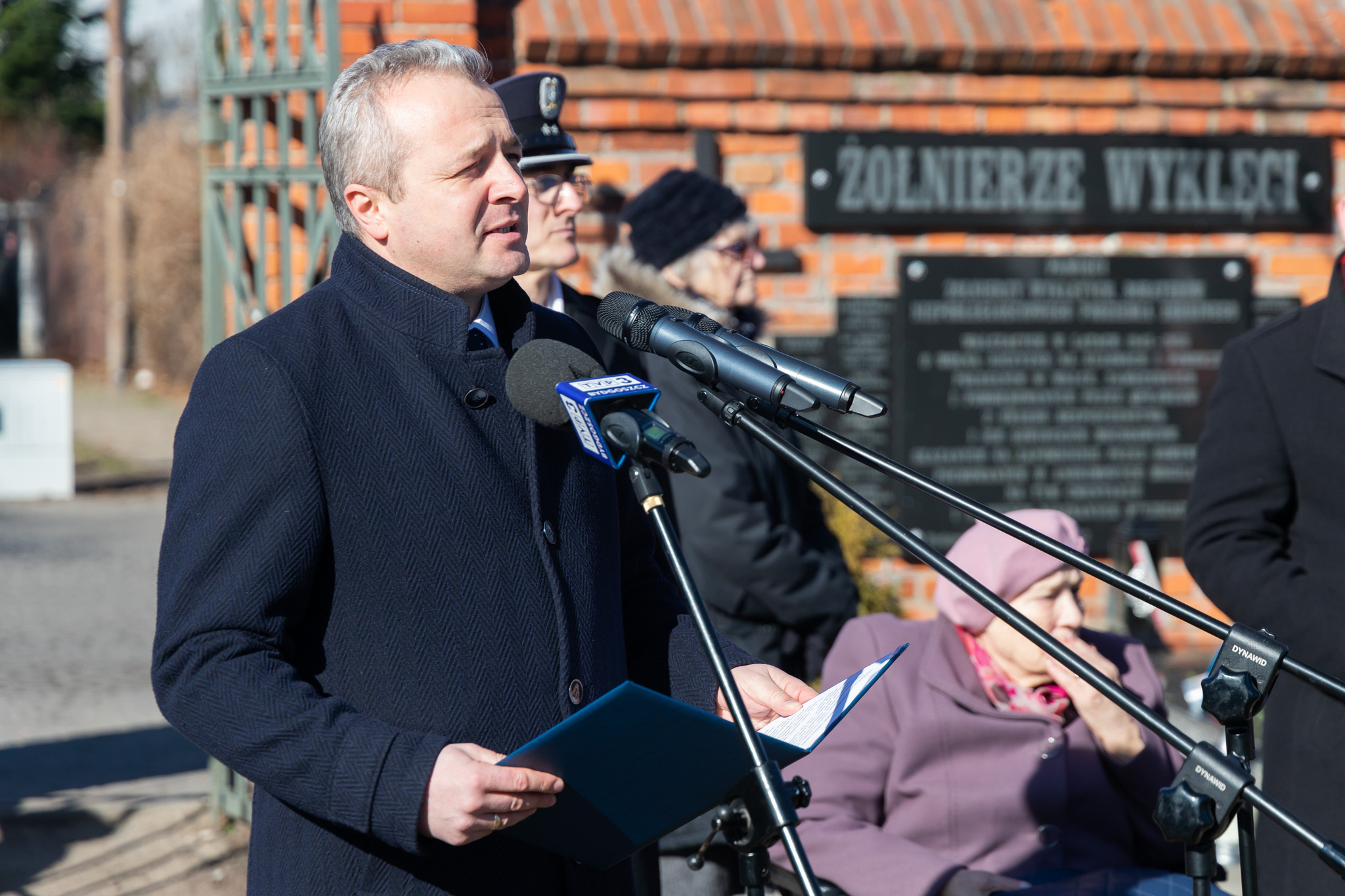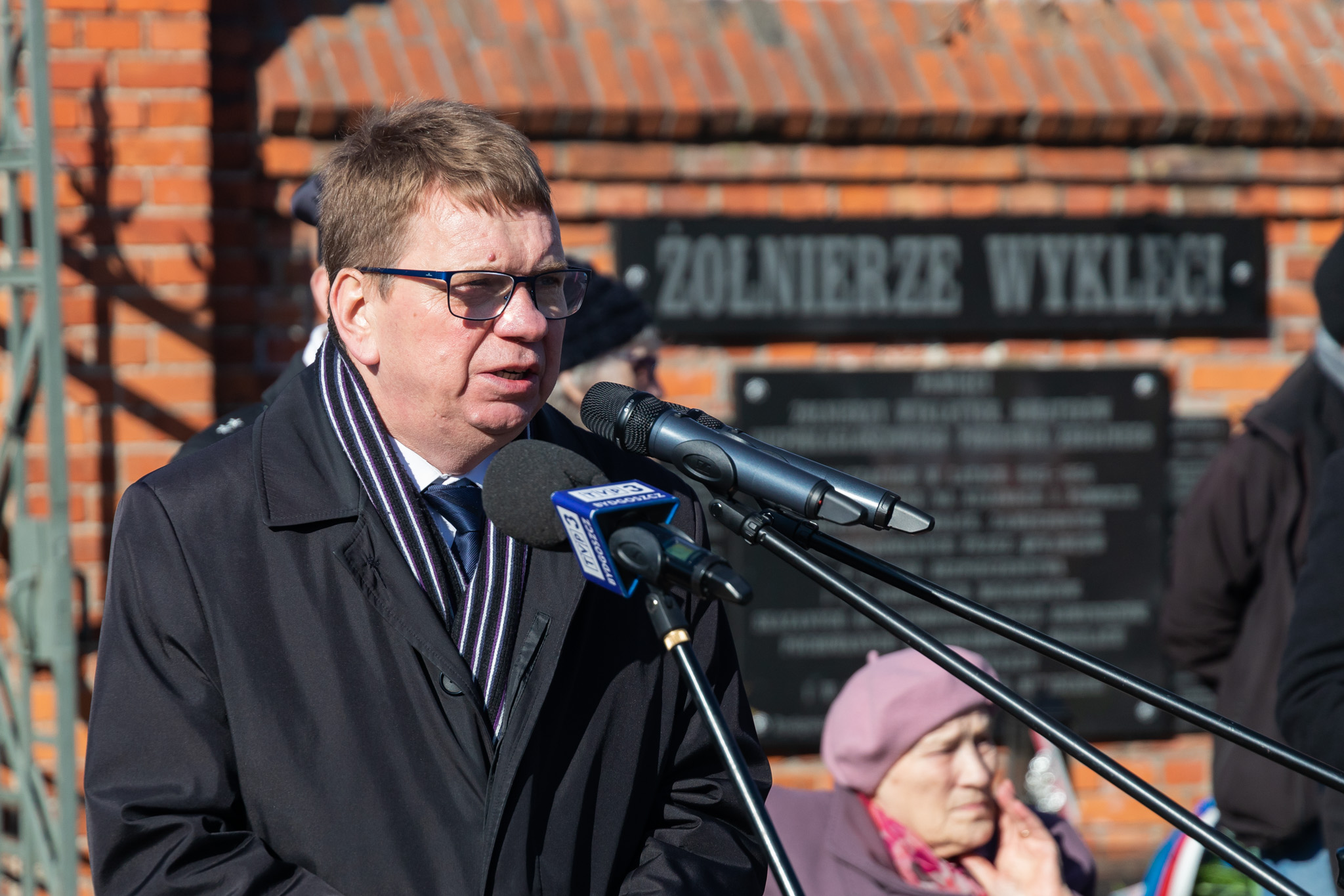 Także na tych, których jeszcze nie ma, których jeszcze szukamy, ale w tej symbolicznej formule. Bo kto jest dzisiaj tutaj pochowany, komu dzisiaj oddajemy hołd? To nie tylko konkretni bohaterowie i konkretni żołnierze, tej ostatniej walki zbrojnej, ostatniej, którą musieliśmy stoczyć. W ich życiorysach znajdziemy wszystko, co najważniejsze w walce o wolność ostatniego stulecia. W ich życiorysach będzie także ta ostatnia batalia, walka, śmierć już w okresie powojennym, w walce z komunistami. I tym wszystkim zbrojnym czynom, oddajemy hołd na grobach żołnierzy wyklętych, bo to się im należy