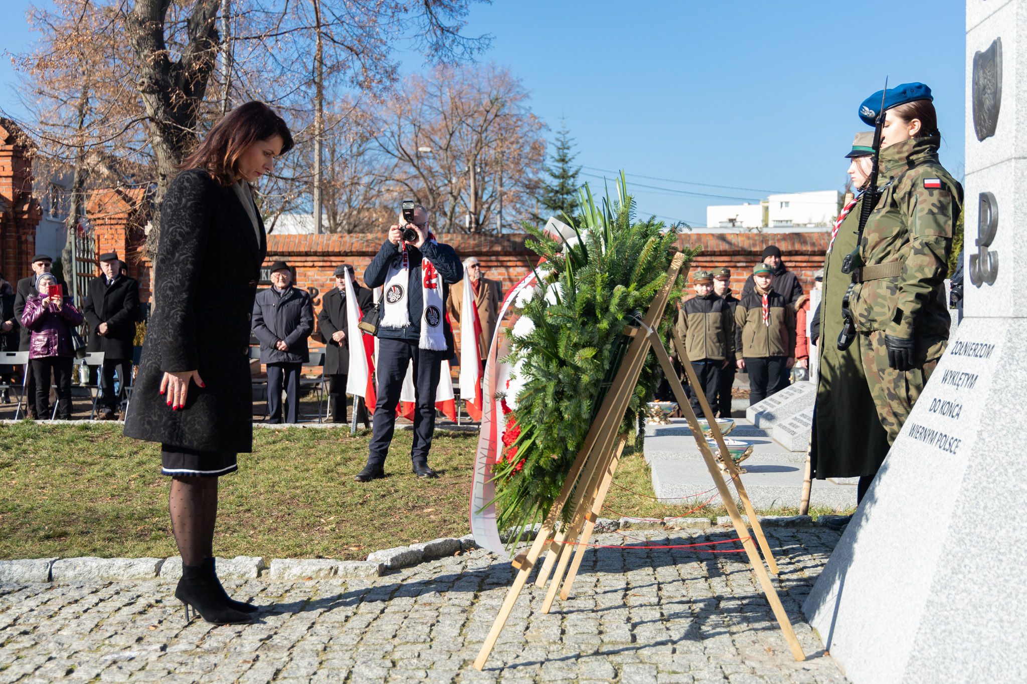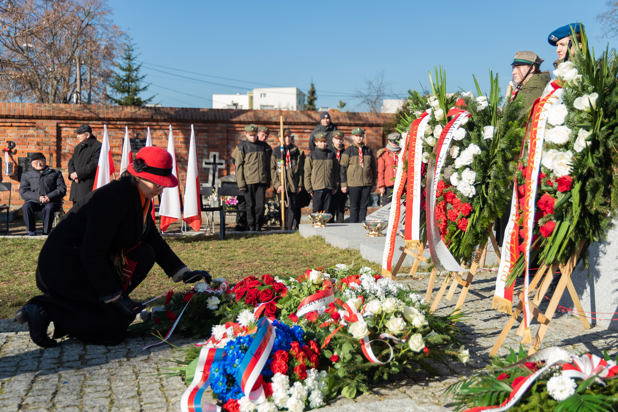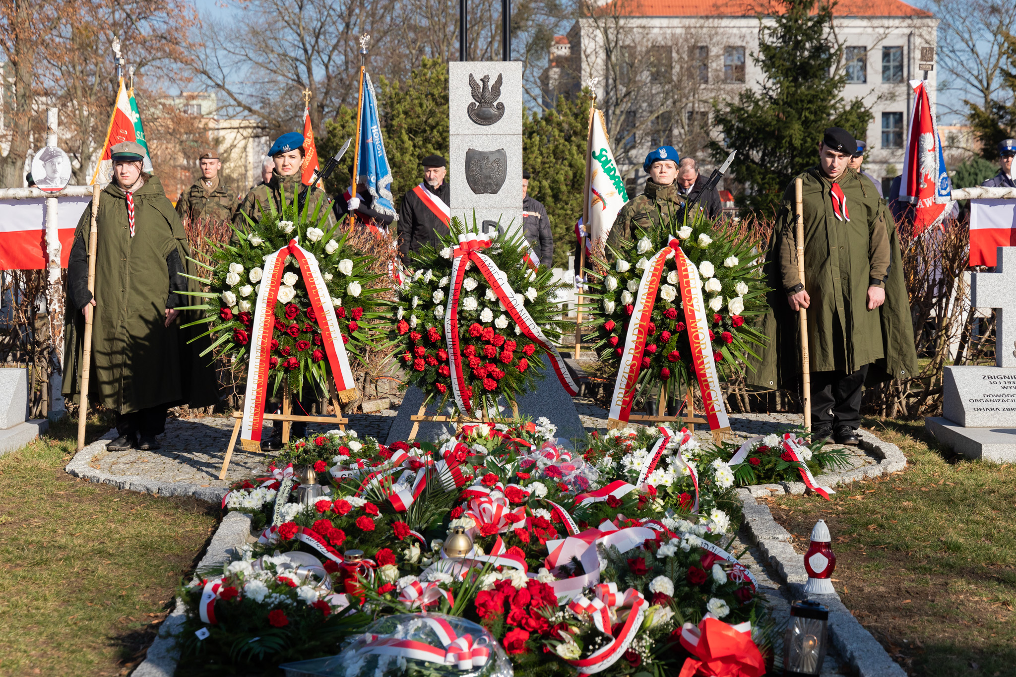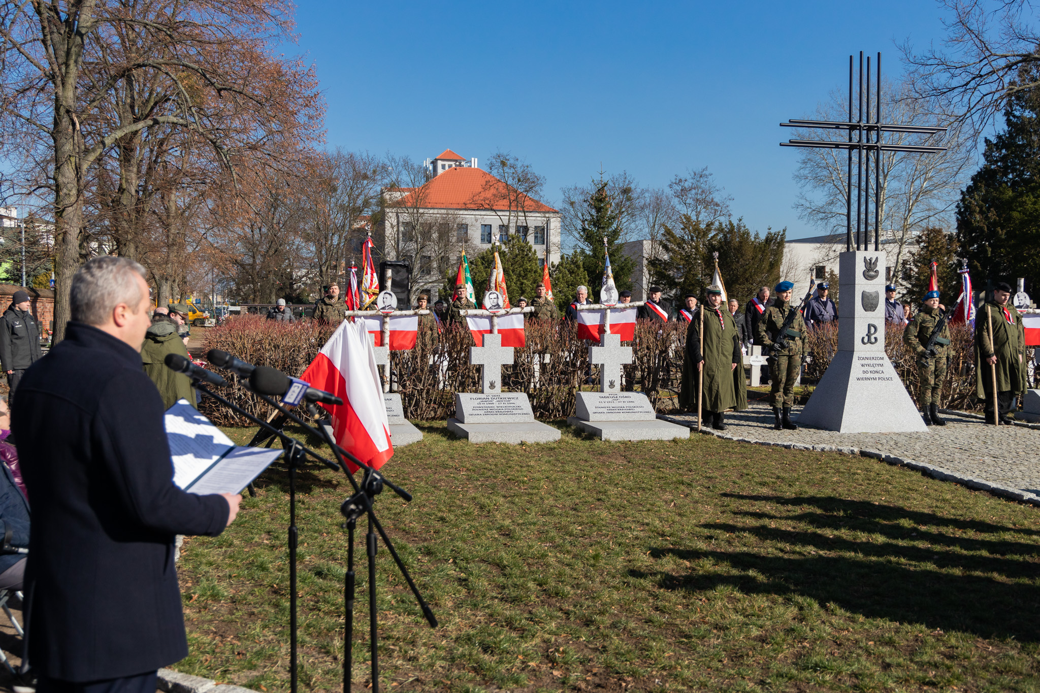 Także na tych, których jeszcze nie ma, których jeszcze szukamy, ale w tej symbolicznej formule. Bo kto jest dzisiaj tutaj pochowany, komu dzisiaj oddajemy hołd? To nie tylko konkretni bohaterowie i konkretni żołnierze, tej ostatniej walki zbrojnej, ostatniej, którą musieliśmy stoczyć. W ich życiorysach znajdziemy wszystko, co najważniejsze w walce o wolność ostatniego stulecia. W ich życiorysach będzie także ta ostatnia batalia, walka, śmierć już w okresie powojennym, w walce z komunistami. I tym wszystkim zbrojnym czynom, oddajemy hołd na grobach żołnierzy wyklętych, bo to się im należy