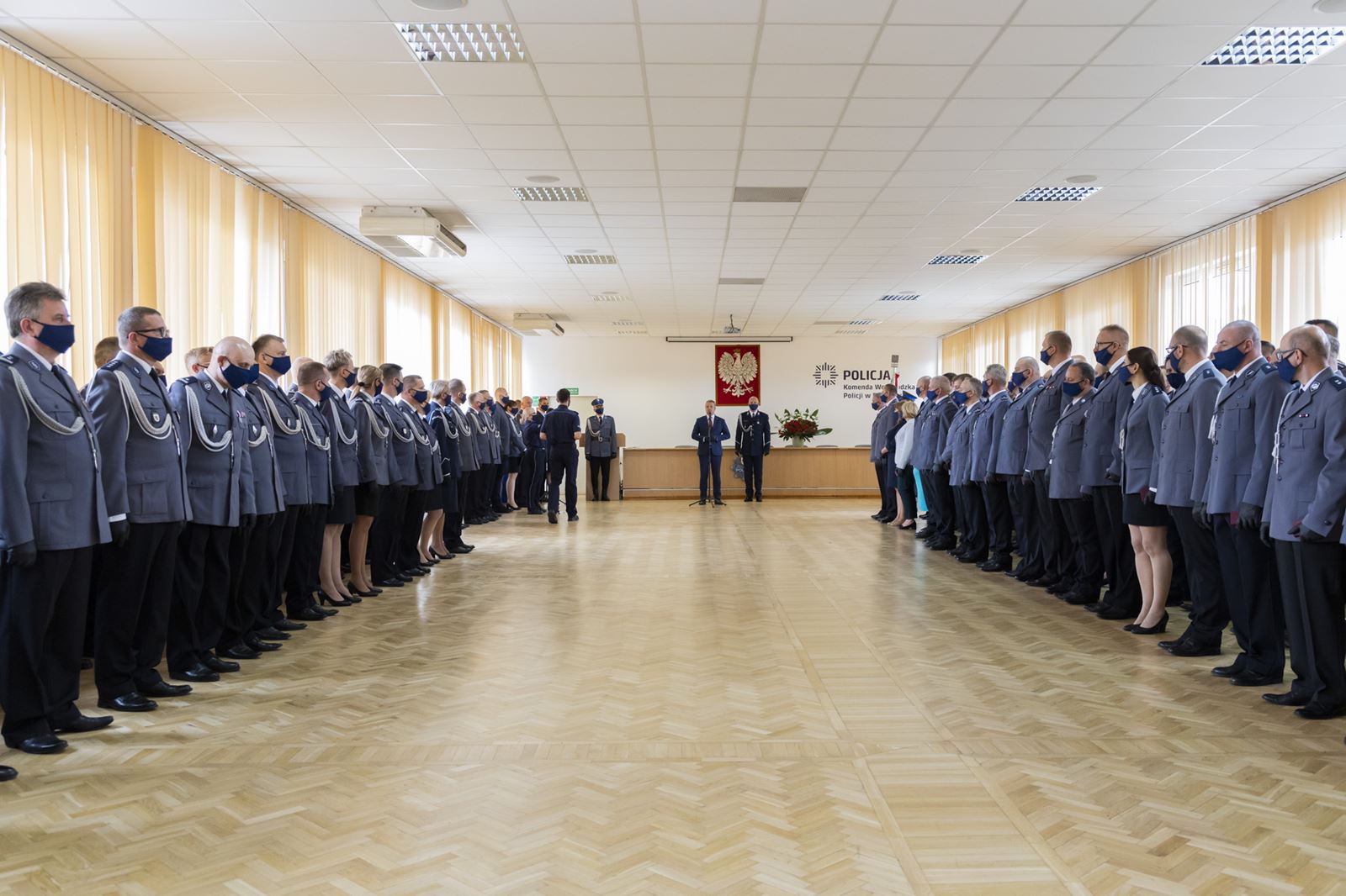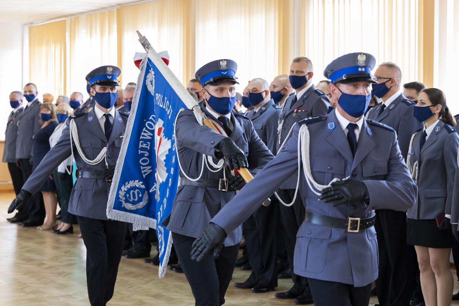 Wojewódzkie obchody Święta Policji w kujawsko-pomorskiem odbyły się, z uwagi na pandemię, w bardzo kameralnym gronie, w Bydgoszczy. Wśród zaproszonych na uroczystość obecni byli Wojewoda Kujawsko-Pomorski Mikołaj Bogdanowicz, Wicemarszałek Województwa Kujawsko-Pomorskiego Zbigniew Ostrowski i Wiceprezydent Bydgoszczy Mirosław Kozłowicz.