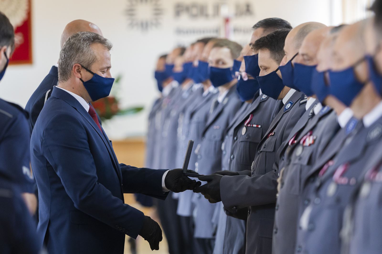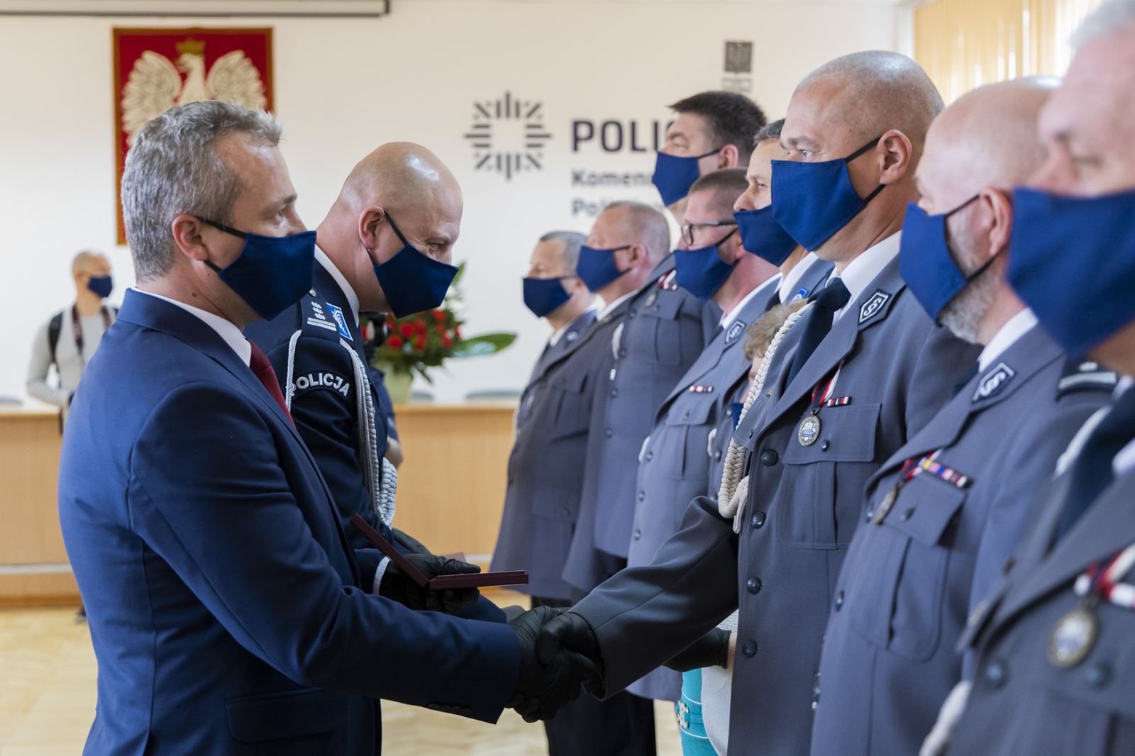 - W czasach współczesnych Policja wykonuje wiele odpowiedzialnych zadań. W dobie pandemii koronawirusa okazaliście Państwo ogromną pomoc obywatelom, kontrolując miejsca kwarantanny i pilnując przestrzegania zasad obostrzonego rygoru sanitarnego. Dziękuję Wam za to – mówił wojewoda Mikołaj Bogdanowicz. - Policja musi być silna, żeby obywatele czuli się bezpiecznie na własnym osiedlu, we własnej gminie czy mieście. I tak się dzieje. Nasz rząd nadal będzie wszechstronnie wzmacniał policję – dodał.