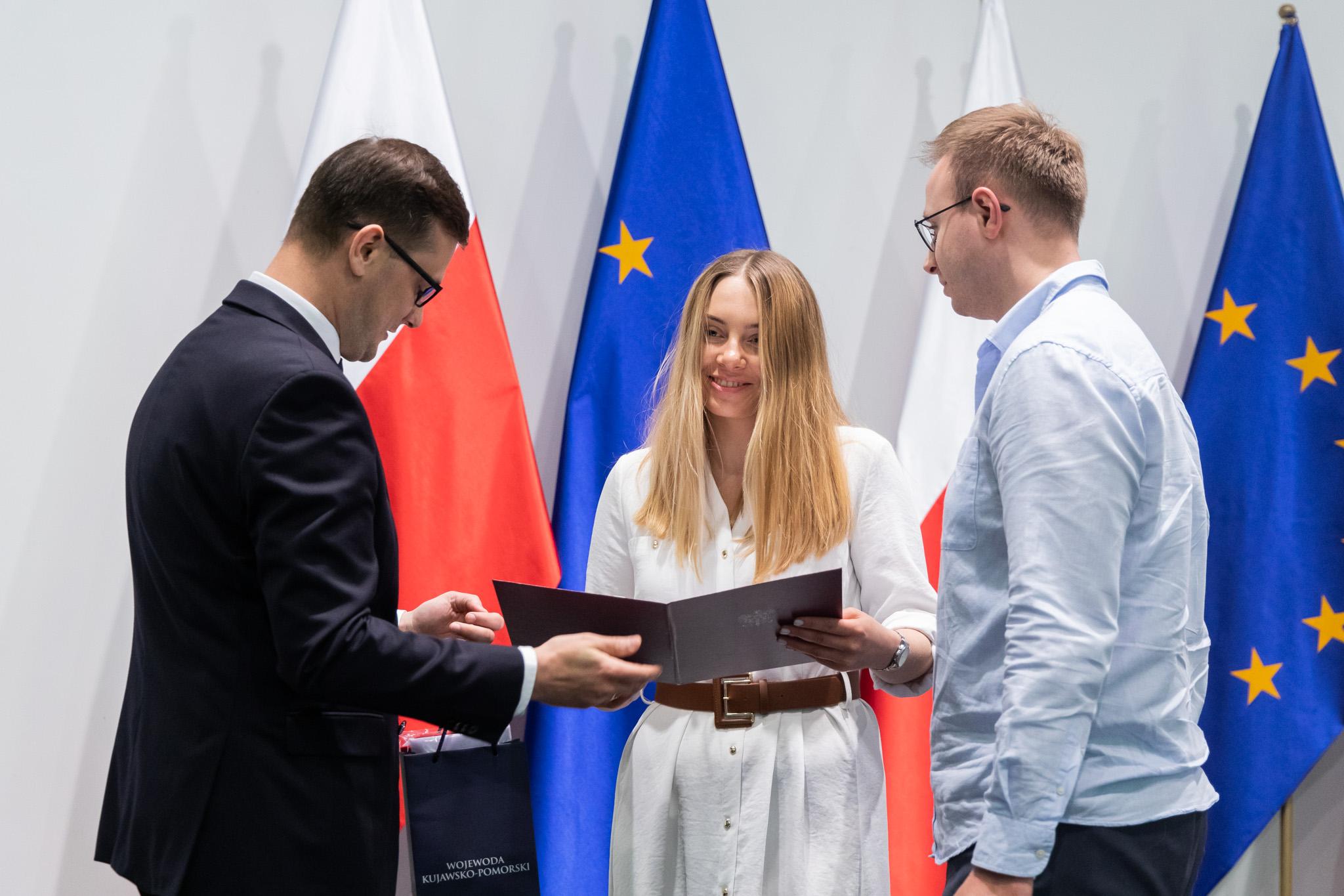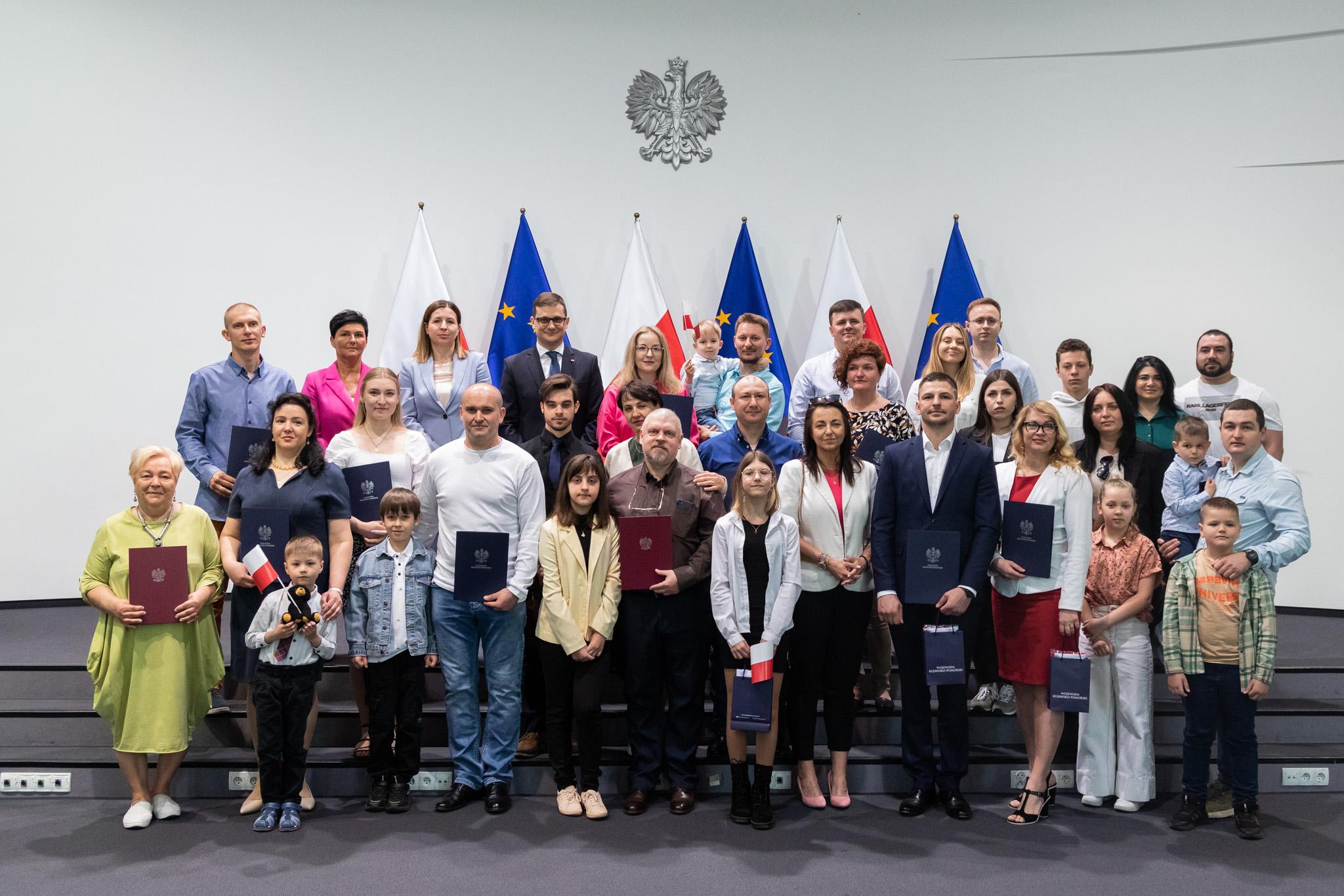 Kolejni obcokrajowcy odebrali akty nadania obywatelstwa polskiego z rąk Wojewody Kujawsko-Pomorskiego Michała Sztybla.