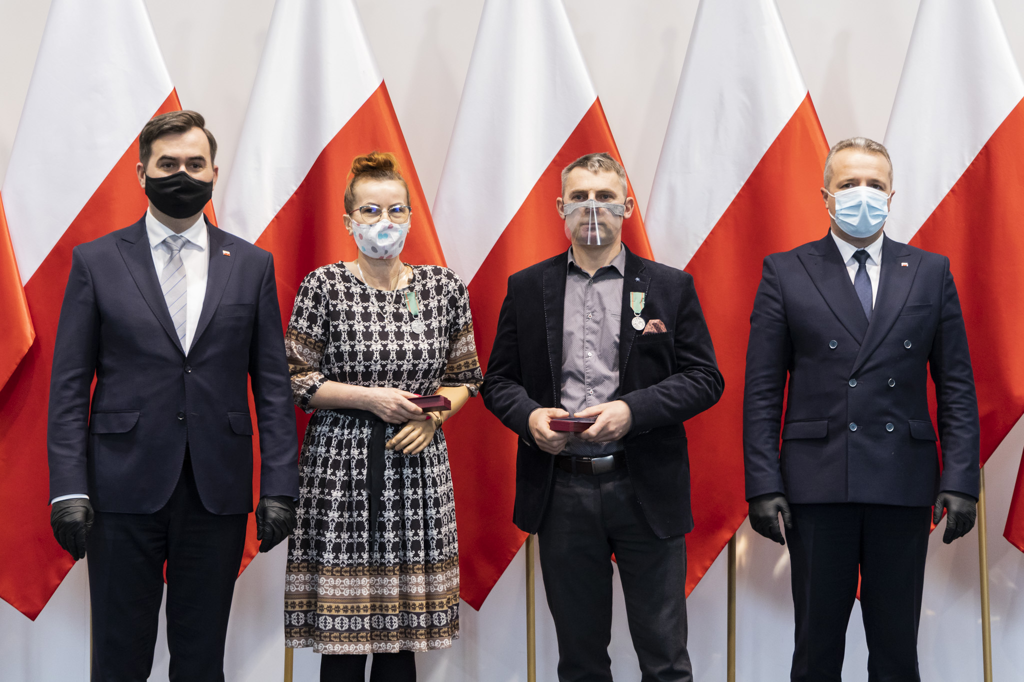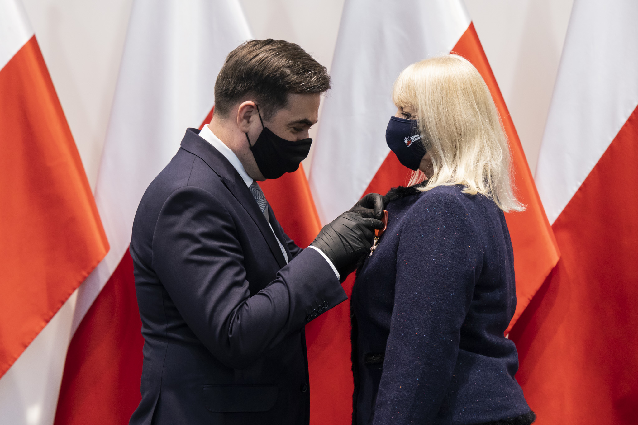 - W imieniu Prezydenta Rzeczypospolitej Polskiej - Andrzeja Dudy gratuluję i dziękuję. Gratuluję tych wysokich państwowych odznaczeń, które są dowodem na to, jak ważna i jak zauważalna jest Państwa praca, poświęcenie i zaangażowanie w różne sprawy, które mają charakter spraw państwowych. Dziękuję za to, że jesteście Państwo zaangażowani w te sprawy. Z całą pewnością są to sprawy, które są ważne dla interesu Rzeczypospolitej. Za to, w imieniu Prezydenta, z całego serca dziękuję – mówił. - Wręczyliśmy dzisiaj dwa bardzo wysokie odznaczenia państwowe Krzyże Komandorskie Orderu Odrodzenia Polski, ale trzeba sobie uczciwie powiedzieć, że czyny, których Państwo dokonali, zasługują na najwyższy szacunek. Nie jest oczywiście przypadkiem, że Państwo zostali także uhonorowani przez Instytut Yad Vashem medalem "Sprawiedliwy wśród Narodów Świata". W czasach najgorszej zawieruchy ukrywanie osób pochodzenia żydowskiego przed niemieckim okupantem było wyrazem największego poświęcenia. Wszyscy wiedzieli czym to się może skończyć. Jedynie w okupowanej Polsce takie czyny kończyły się zawsze bezwzględną śmiercią. Dlatego osoby, które takich czynów dokonywały zasługują na najwyższy szacunek i uznanie. Raz jeszcze w imieniu Prezydenta Rzeczypospolitej Polskiej ogromnie dziękuję – dodał minister Spychalski.