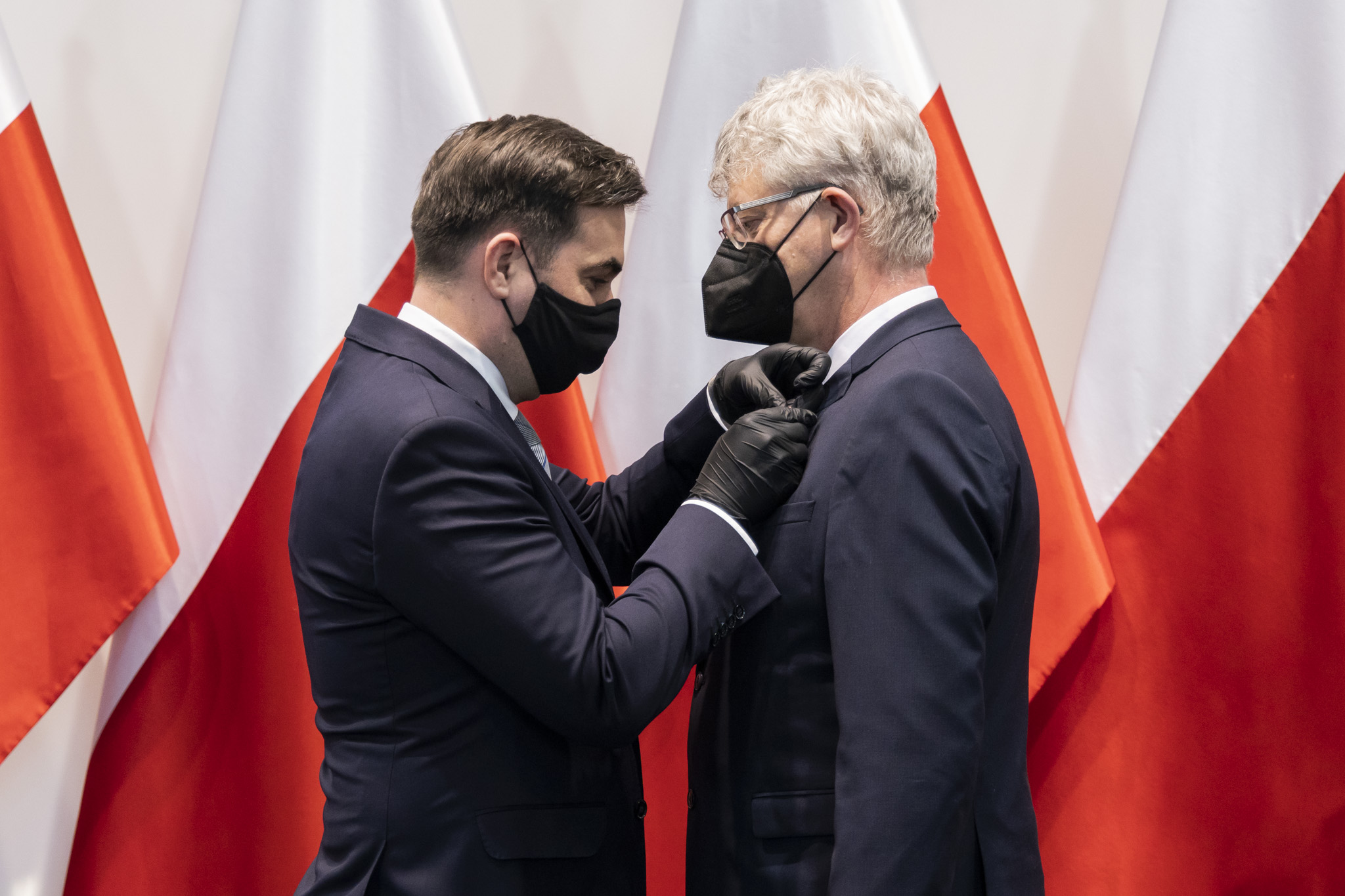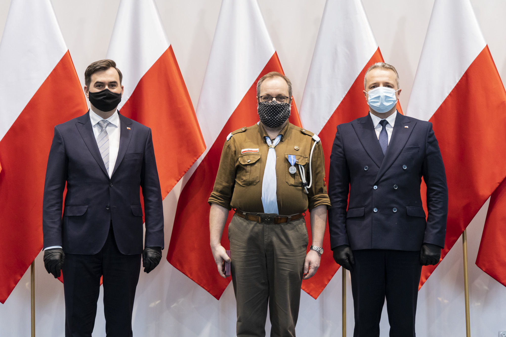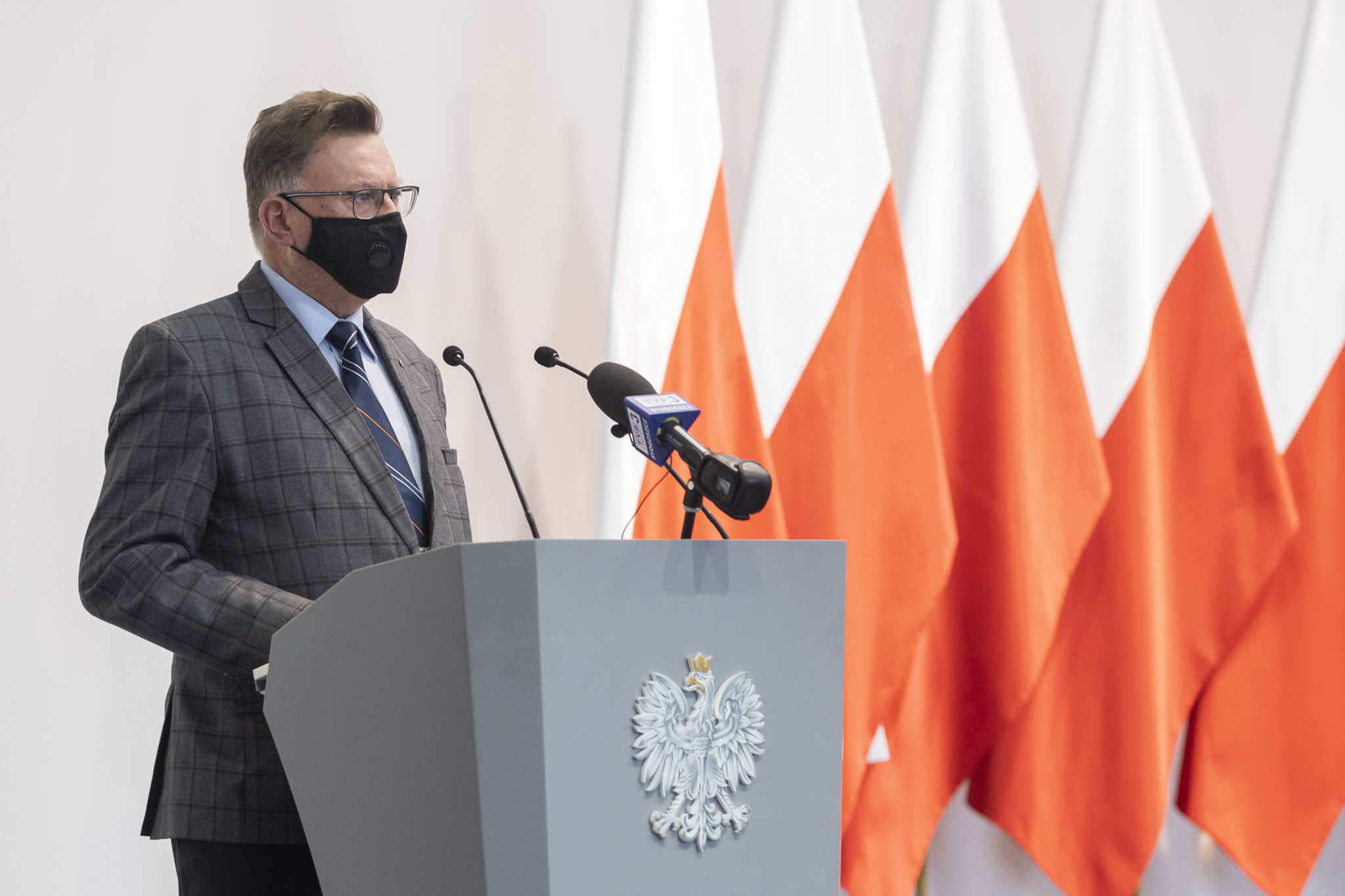 Po wręczeniu odznaczeń głos zabrał Sekretarz Stanu w Kancelarii Prezydenta Rzeczypospolitej Polskiej Minister Błażej Spychalski:
