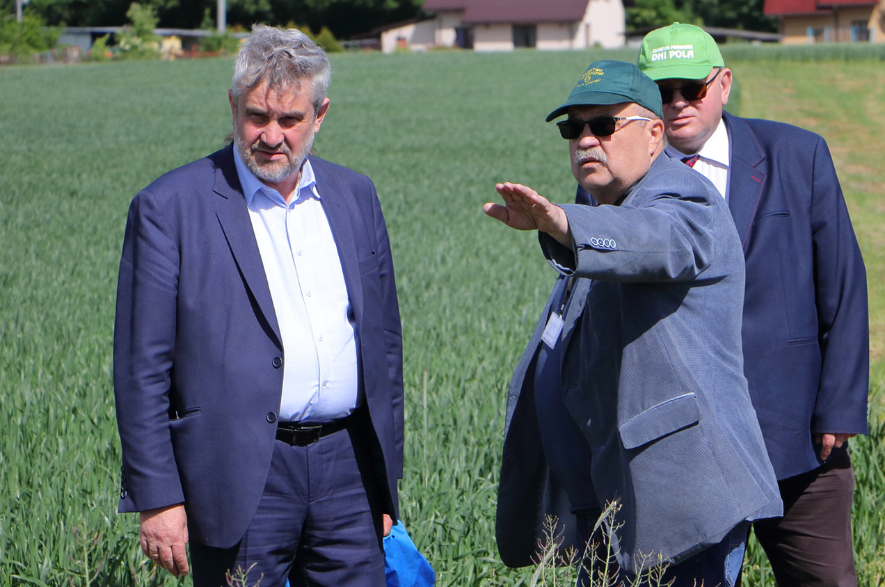 Minister zachęcał do zapoznania się z najnowszymi osiągnieciami firm nasiennych, które prezentują na poletkach doświadczalnych odmiany roślin lepiej dostosowanych do aktualnych zmian klimatycznych, bardziej odporne na niedostatek wody.