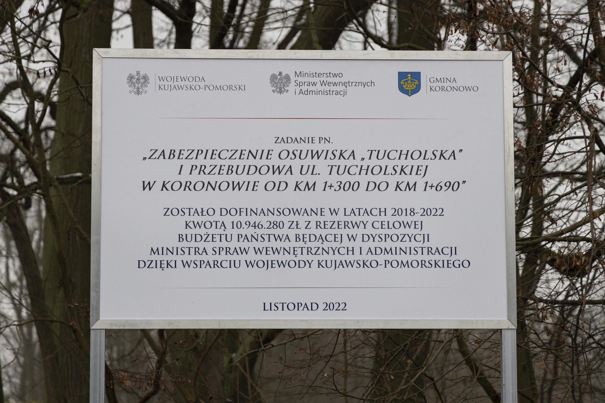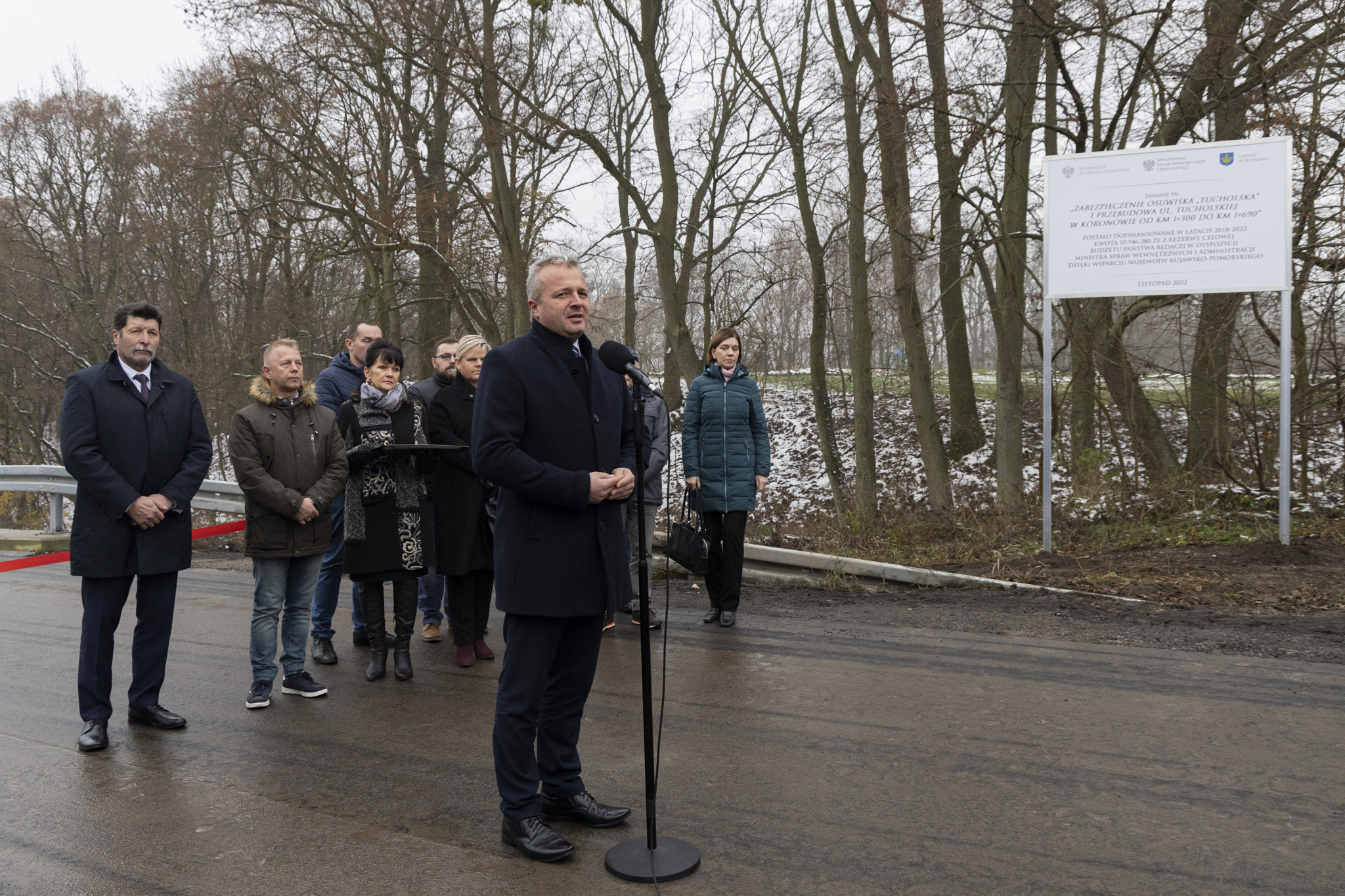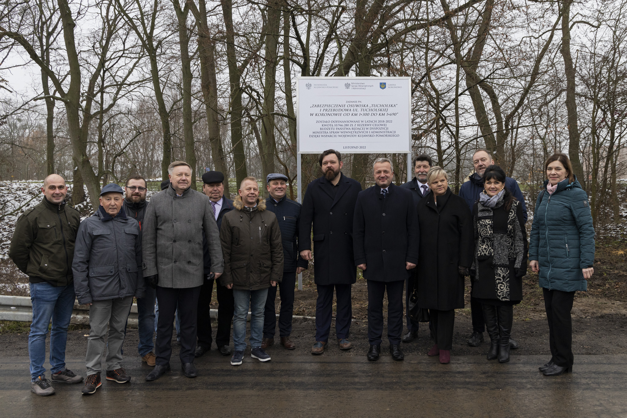 Burmistrz Koronowa Patryk Mikołajewski przypomniał, że już od lat 80. mieszkańcy zmagali się z problemem ulicy Tucholskiej – „zjeżdżającej” w stronę Brdy. Jedyną szansą na dalsze użytkowanie drogi było naprawienie osuwiska. Dzięki wbiciu w skarpę pionowych kolumn iniekcyjnych na odcinku ok. 300 metrów ruch mas ziemi został zatrzymany. Ponadto wykonano m.in. odwodnienie ulicy, kanalizację deszczową, nawierzchnię oraz elementy małej architektury.