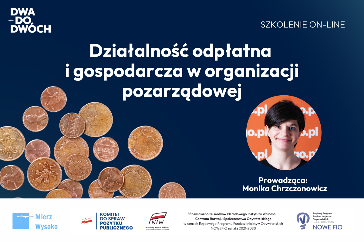 Zapraszamy na bezpłatne szkolenie pt. “Działalność odpłatna i gospodarcza w organizacji pozarządowej”.