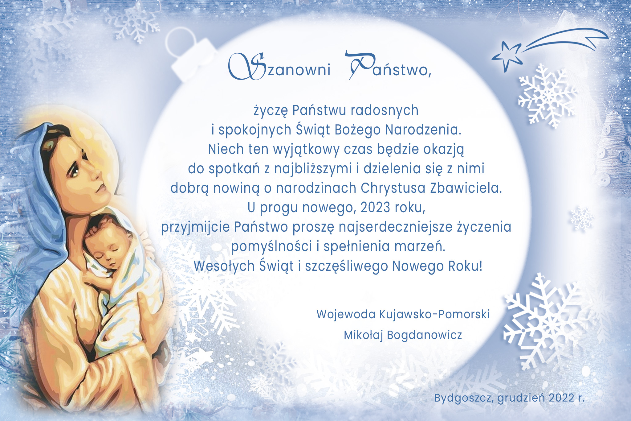 Czas Świąt Bożego Narodzenia to chwila, w której dzielimy się dobrym słowem – Wojewoda Kujawsko-Pomorski Mikołaj Bogdanowicz składa mieszkańcom regionu najserdeczniejsze życzenia.