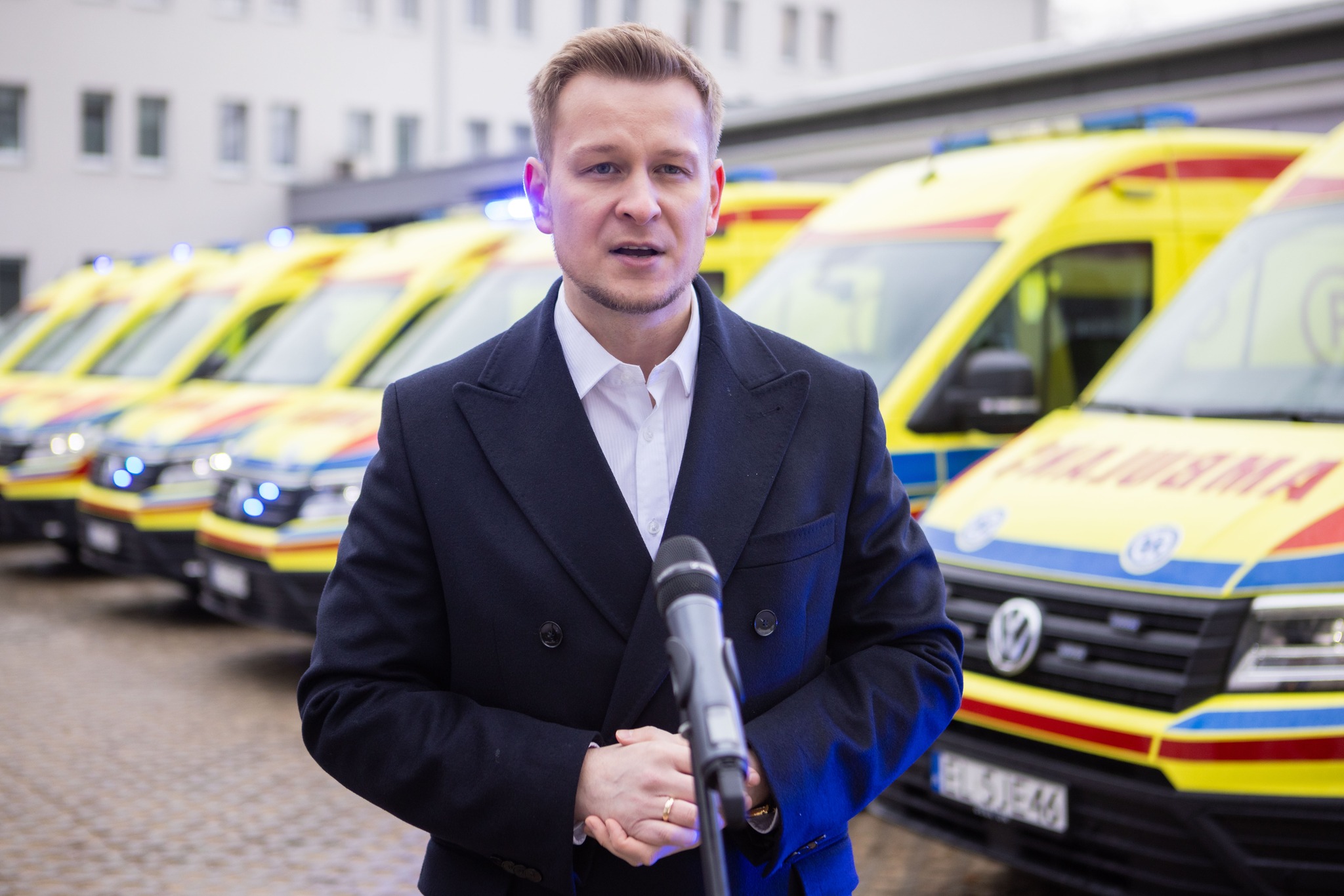 I Wicewojewoda Łódzki Marcin Buchali uczestniczył w uroczystości przekazania ambulansów sanitarnych zakupionych w ramach zadania „Dofinansowanie zakupu 8 ambulansów sanitarnych dla WSRM w Łodzi”.