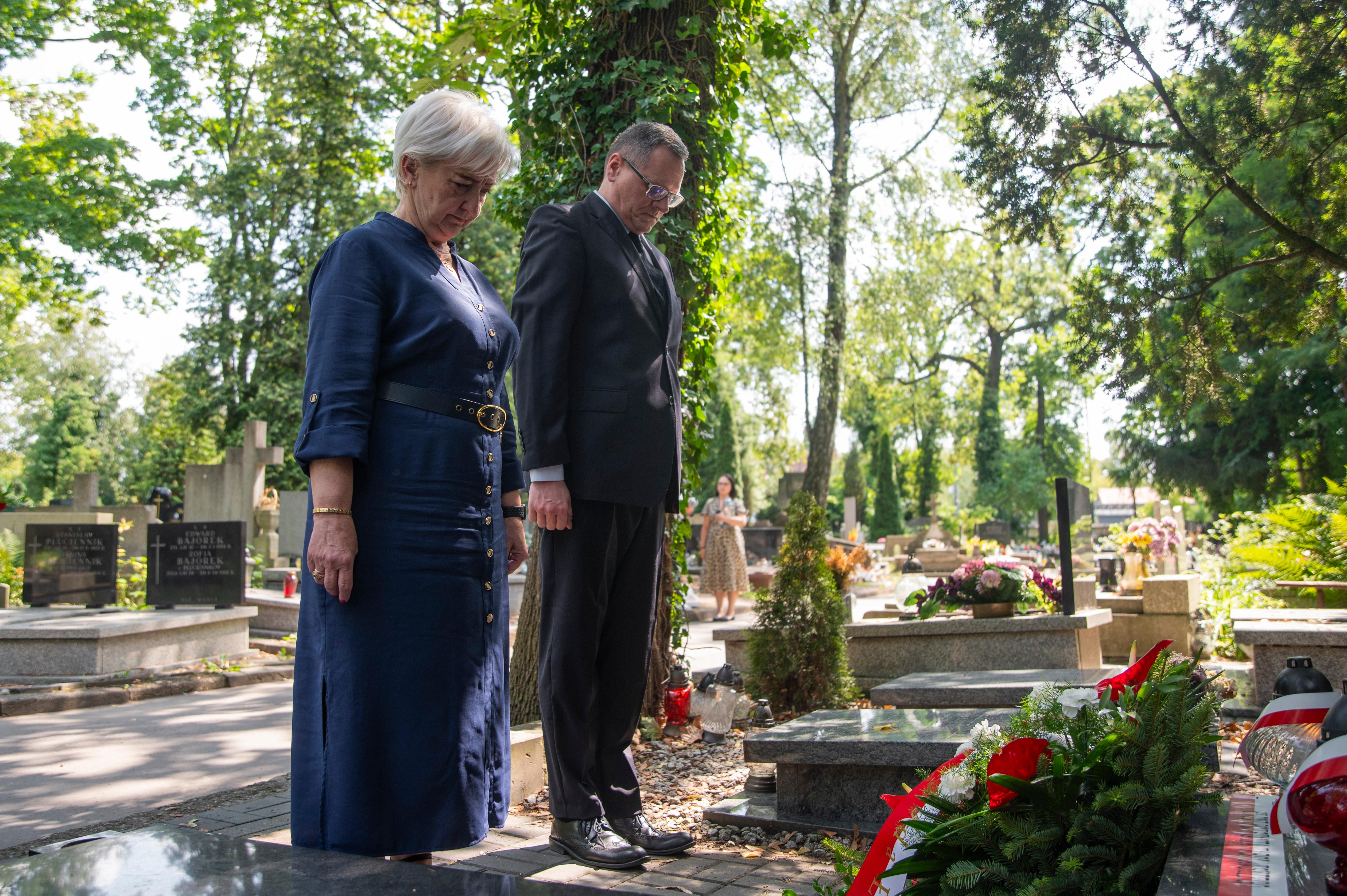 Kwiaty, wraz z symbolicznymi zniczami, złożyli na Starym Cmentarzu w Łodzi, m.in. na grobie Franciszka Edwarda Pfeiffera – łodzianina, który dowodził Grupą Śródmieście Północ – Radwan podczas powstania.