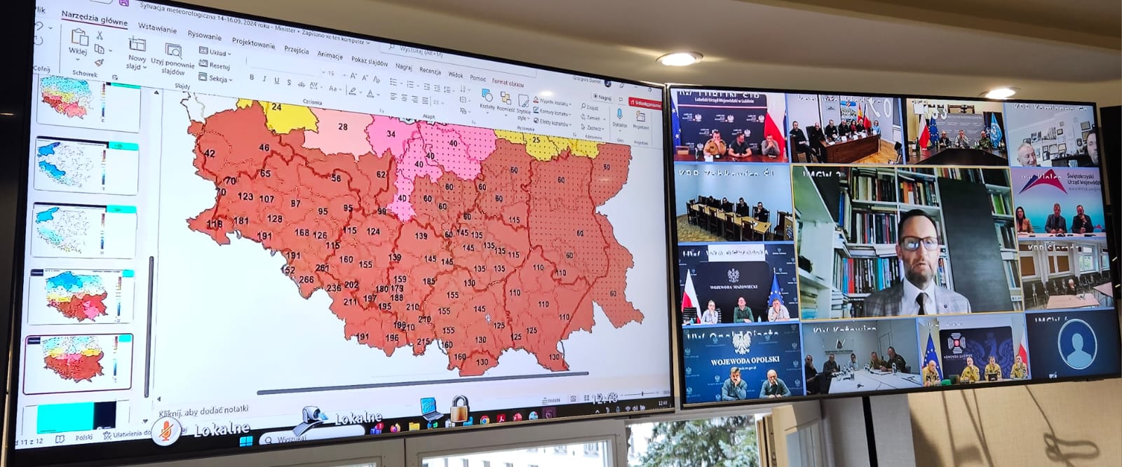 W sobotnie (14.09) południe odbyła się wideokonferencja ministra MSWiA Tomasza Siemoniaka z wojewodami, przedstawicielami Rządowego Centrum Bezpieczeństwa i służbami, dotycząca aktualnej sytuacji meteorologiczno-hydrologicznej w Polsce. W odprawie uczestniczyła wojewoda łódzki Dorota Ryl wraz z reprezentantami Wojewódzkiego Centrum Zarządzania Kryzysowego.