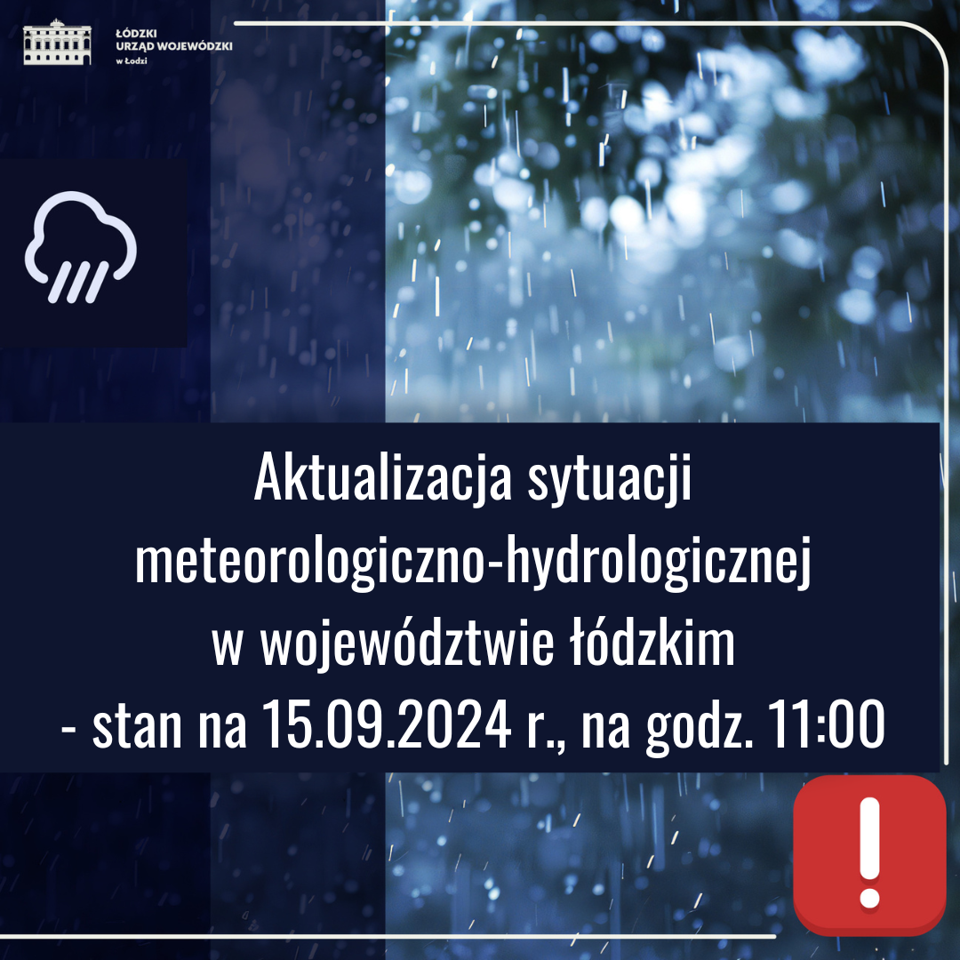 Aktualizacja sytuacji meteorologiczno-hydrologicznej w województwie łódzkim – stan na 15 września 2024 r., na godzinę 11:00.