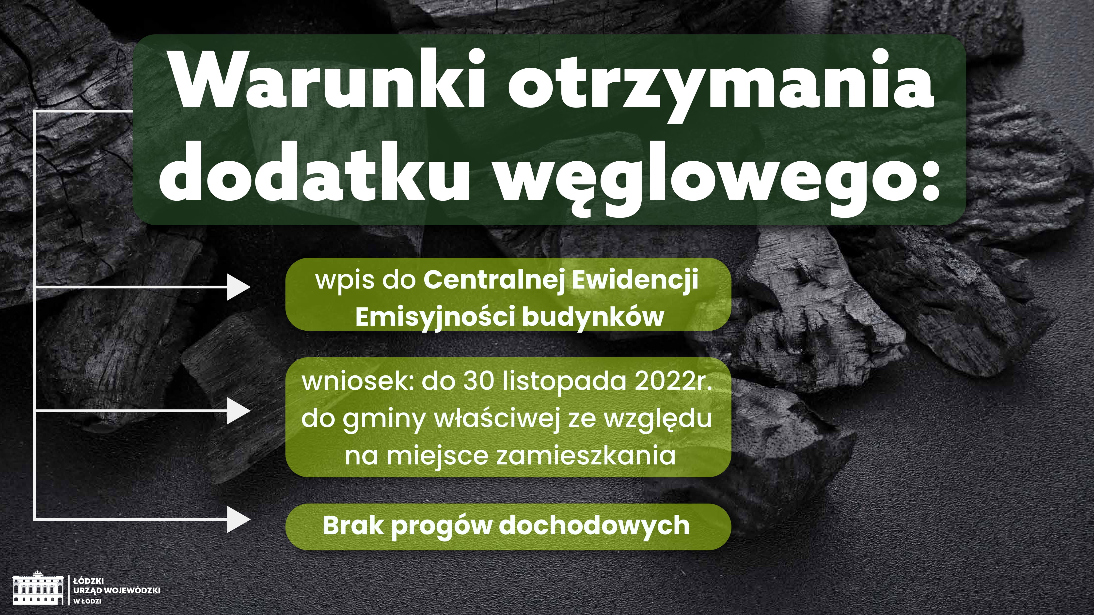 Wsparcie przysługuje gospodarstwom domowym, dla których głównym źródłem ogrzewania jest kocioł na paliwo stałe, kominek, koza, ogrzewacz powietrza, trzon kuchenny, piecokuchnia, kuchnia węglowa lub piec kaflowy na paliwo stałe – zasilane węglem kamiennym, brykietem lub peletem, zawierającymi co najmniej 85% węgla kamiennego. Warunkiem otrzymania dodatku węglowego jest wpis lub zgłoszenie do centralnej ewidencji emisyjności budynków. Brak jest kryterium dochodowego!