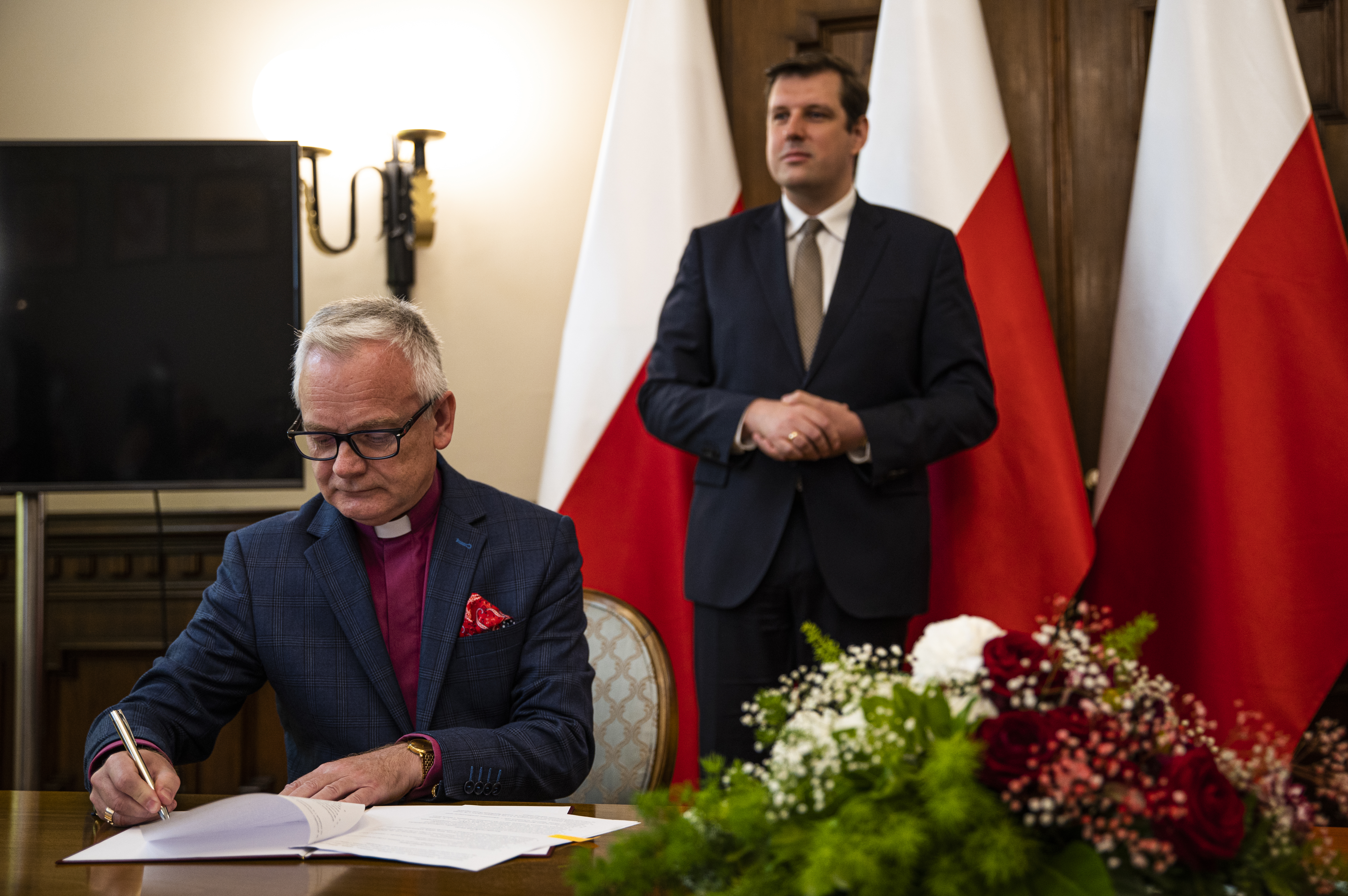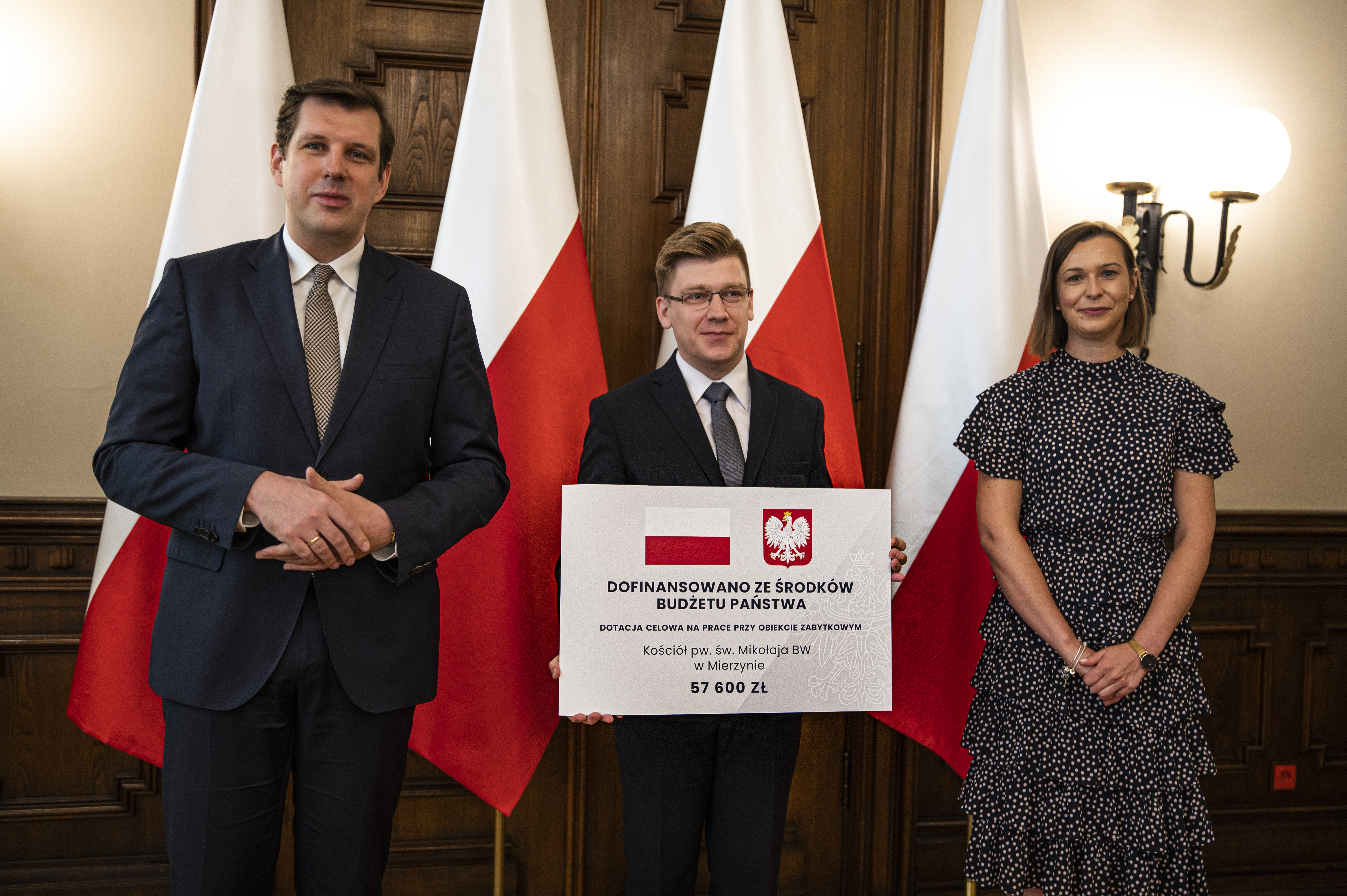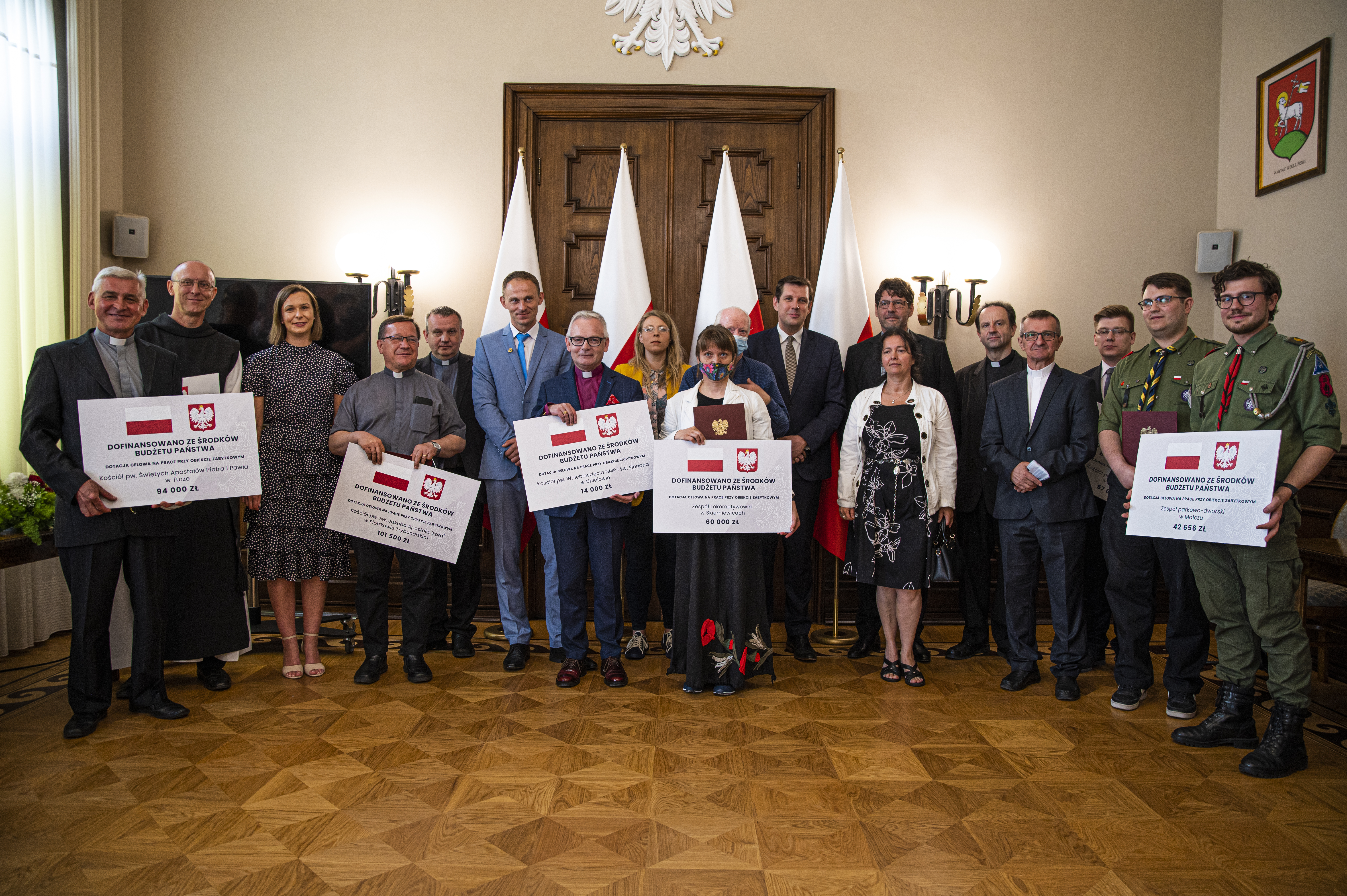 Dziś w Łódzkim Urzędzie Wojewódzkim, wojewoda łódzki Tobiasz Bocheński wraz z wojewódzkim konserwatorem zabytków Aleksandrą Stępień przekazali czeki z dofinansowaniem na prace konserwatorskie lub restauratorskie przy zabytkach wpisanych na Listę Skarbów Dziedzictwa.