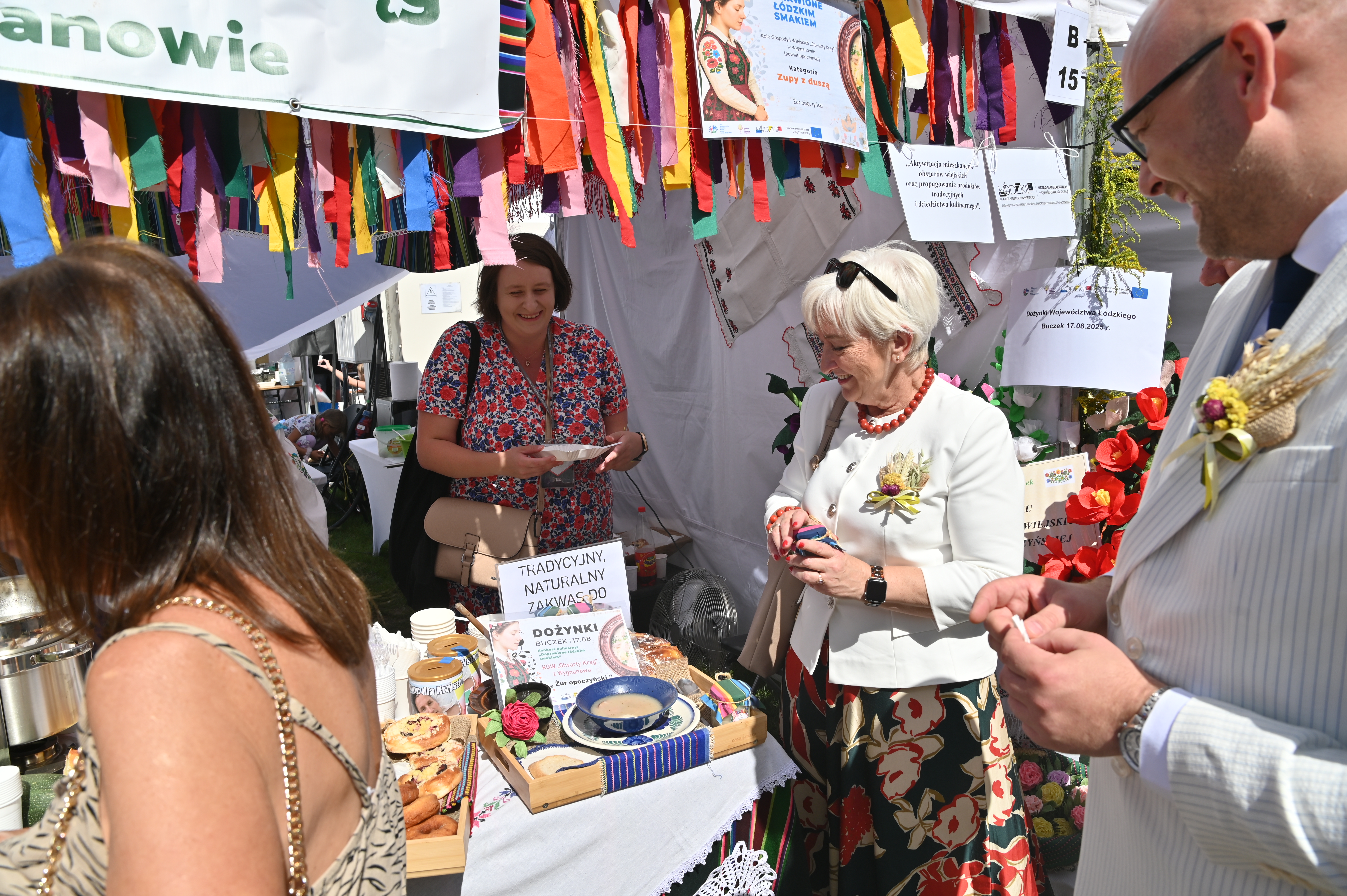 Strefa wystawców podczas Dożynek Wojewódzkich w Buczku (słynącym z uprawy przepysznych truskawek) obejmowała ponad 200 namiotów – poza Kołami Gospodyń Wiejskich swój dorobek prezentowały tam gminy, powiaty, służby mundurowe ale też instytucje samorządu województwa łódzkiego, m.in. teatry, Łódzka Kolej Aglomeracyjna, Regionalna Organizacja Turystyczna. Główną organizatorką wydarzenia była Joanna Skrzydlewska, Marszałek Województwa Łódzkiego.