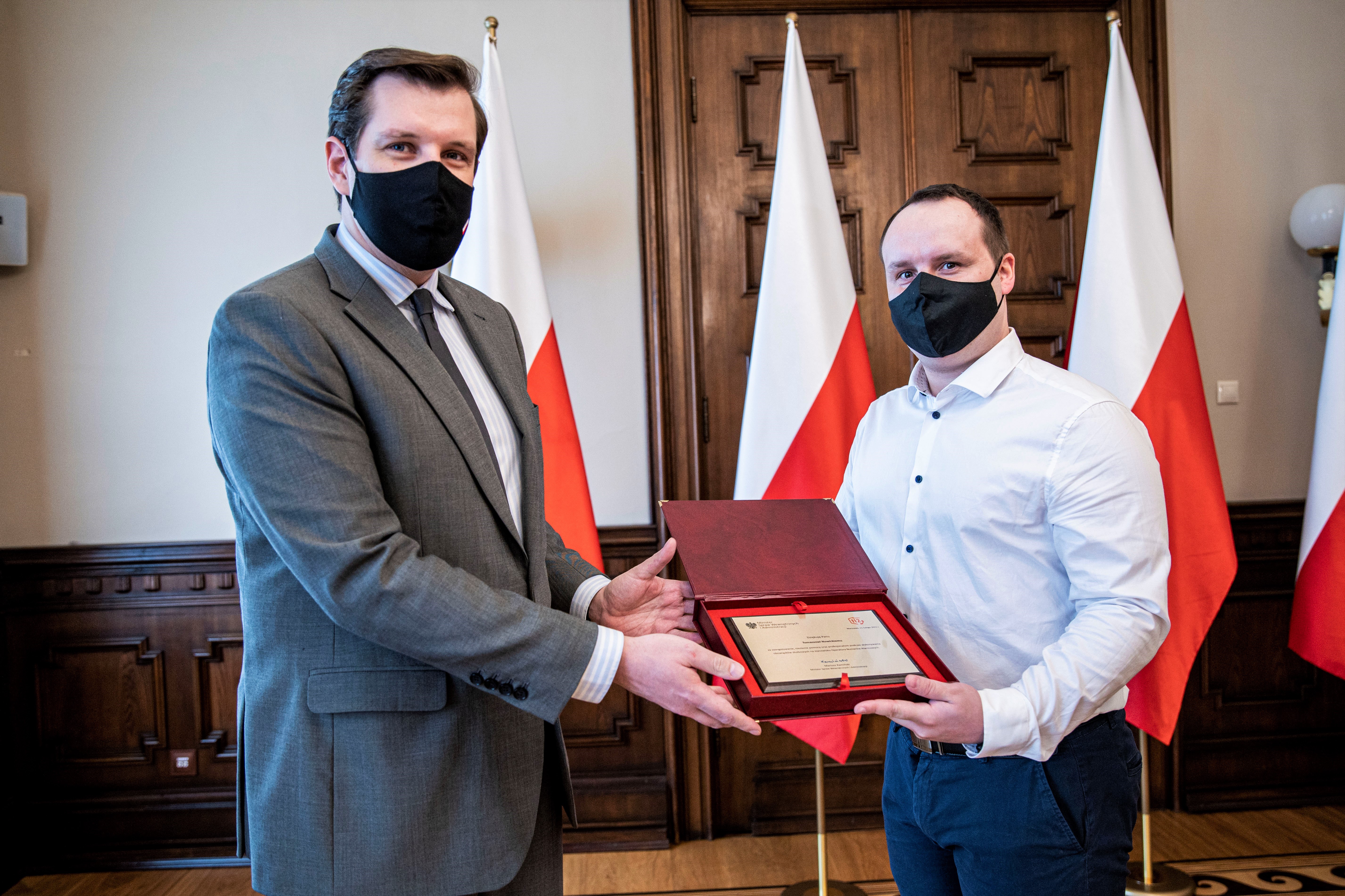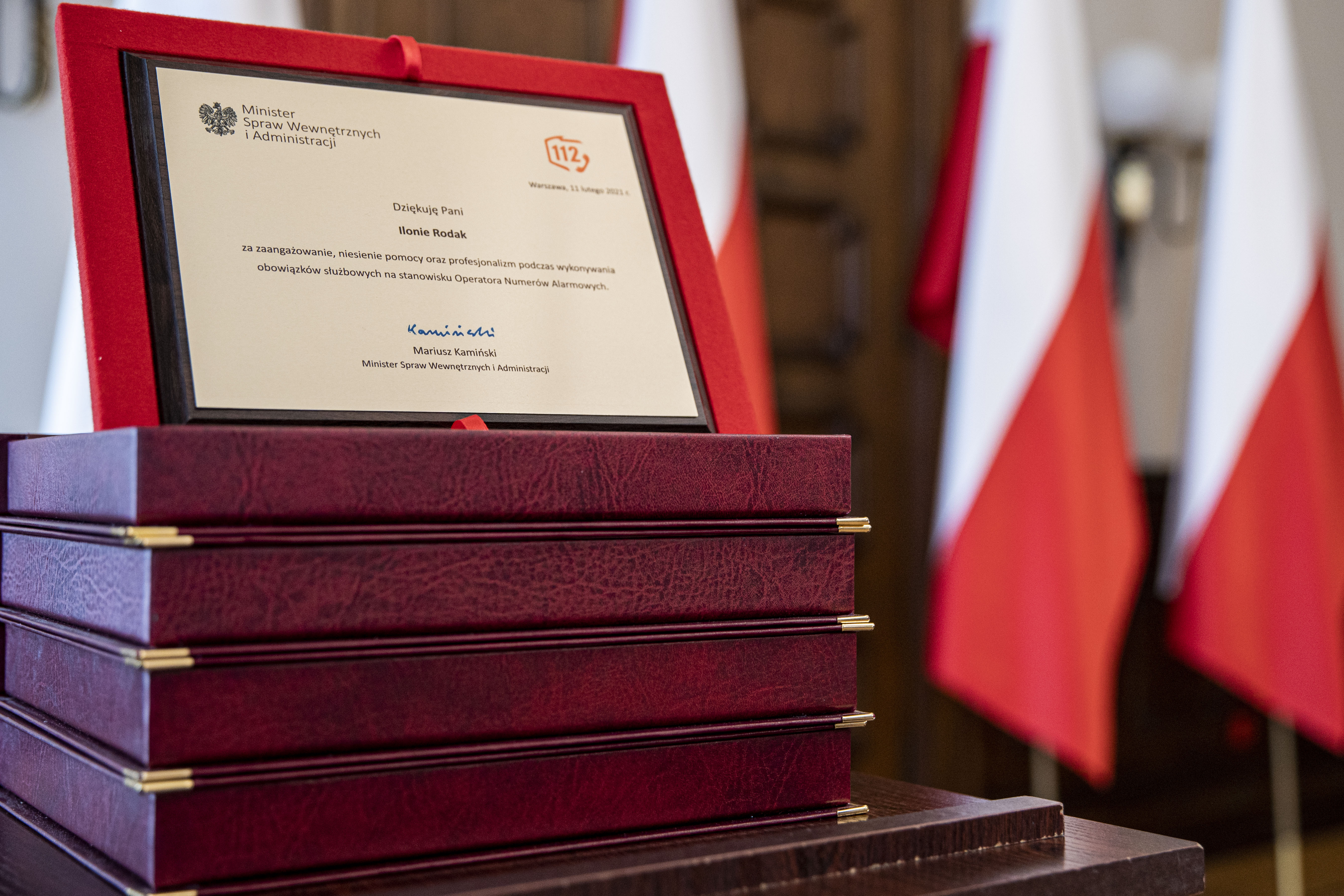 W imieniu szefa MSWiA Mariusza Kamińskiego wojewoda łódzki Tobiasz Bocheński wręczył dziś wyróżnienia naszym operatorom numeru alarmowego 112.