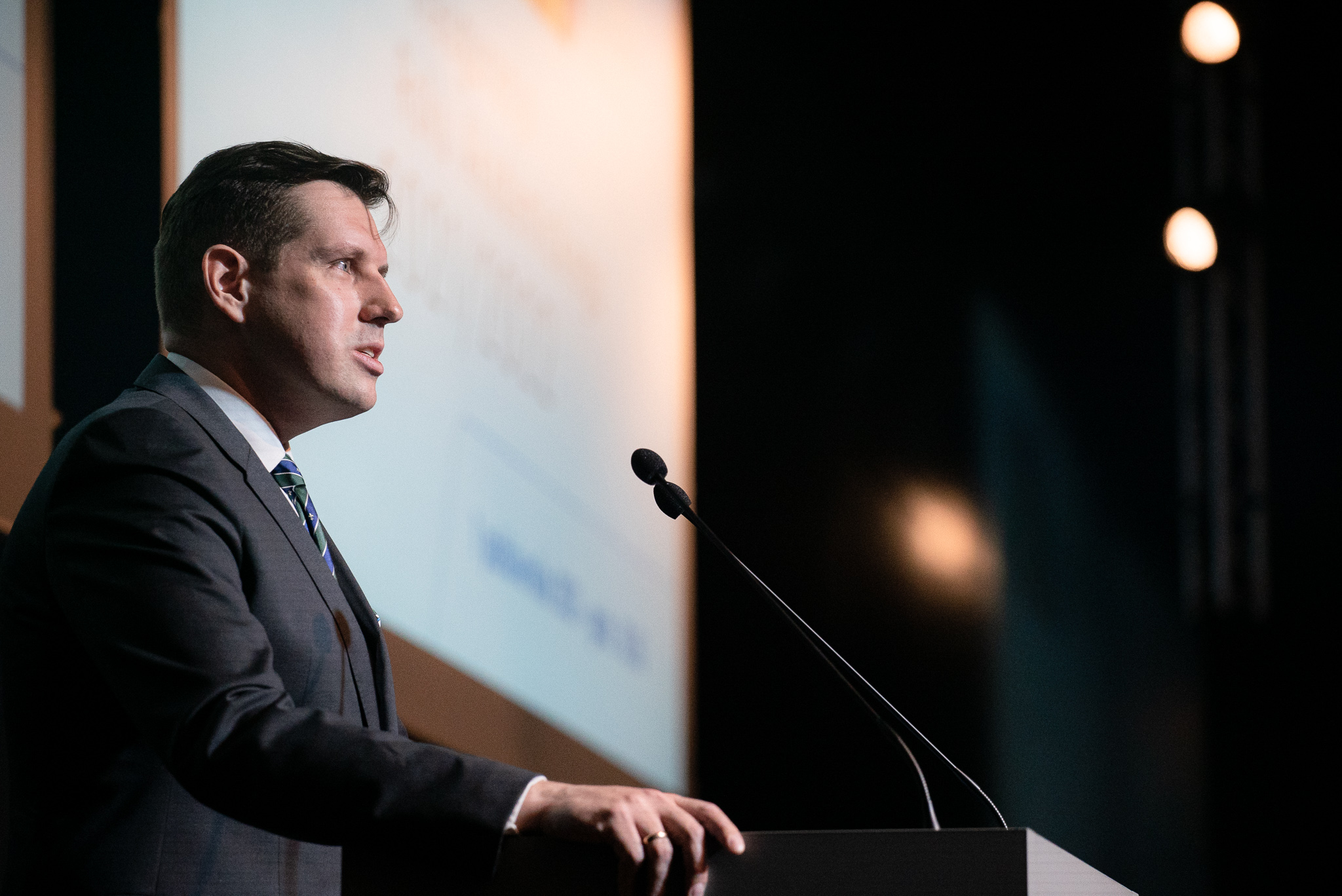 Wojewoda łódzki Tobiasz Bocheński w trakcie swojego przemówienia wyraził wdzięczność za pracę, którą kadra oraz studenci uniwersytetu wykonywali w okresie pandemii: