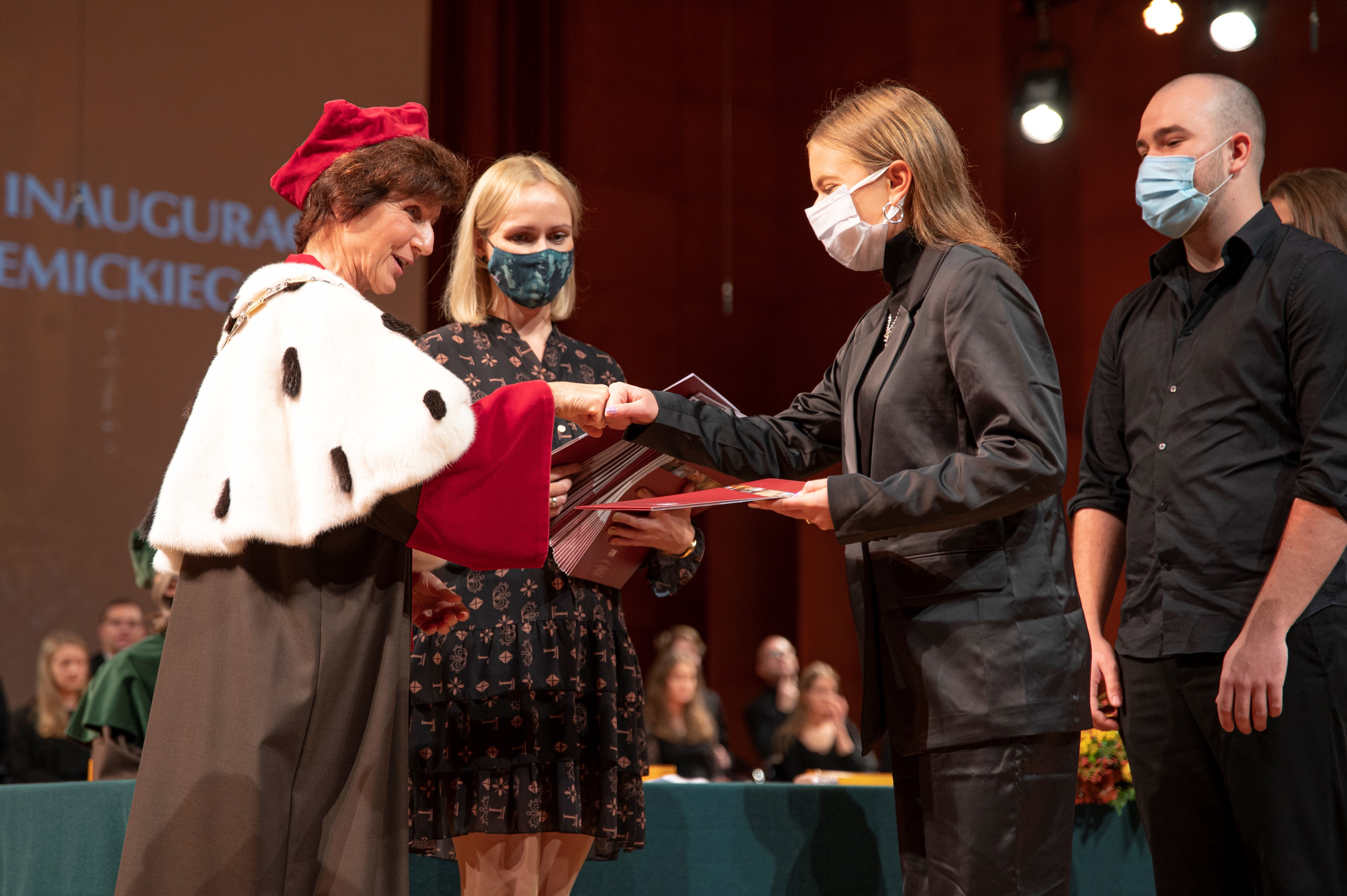 W trakcie uroczystośći wojewoda wręczył najbardziej zasłużonym pracownikom uczelni wysokie odznaczenia państwowe. Złoty Medal „Zasłużony Kulturze Gloria Artis” otrzymał prof. dr hab. Antoni Wierzbiński (flecista, rektor Akademii w latach 2005-12). Srebrne Medale „Zasłużony Kulturze Gloria Artis” otrzymali: prof. dr hab. Cezary Sanecki (pianista, rektor Akademii w latach 2012-20) oraz prof. dr hab. Sławomir Kaczorowski (kompozytor, kierownik Katedry Kompozycji do września 2021 r.). Brązowym Medalem „Zasłużony Kulturze Gloria Artis” uhonorowano prof. dr. hab. Piotra Micińskiego (wokalista, kierownik Katedry Wokalistyki). Odznakę Honorową „Zasłużony dla Kultury Polskiej” przyznano mgr Małgorzacie Myślińskiej (kwestor Akademii do września 2021 r.).