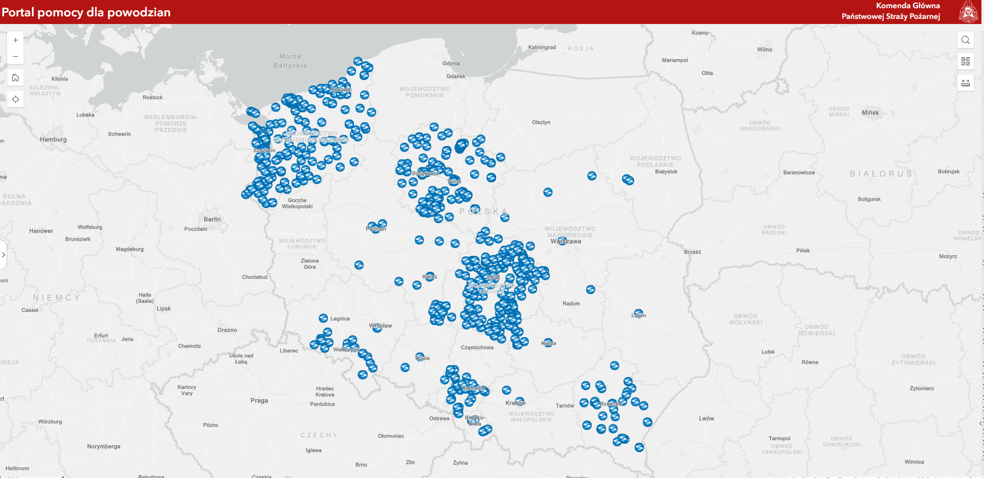 W związku z licznymi pytaniami, ze strony przedsiębiorstw i osób fizycznych, dotyczącymi możliwości udzielenia pomocy poszkodowanym w wyniku powodzi, Komenda Główna Państwowej Straży Pożarnej przygotowała wykaz oraz interaktywną mapę lokalizacji punktów zbiórek darów.