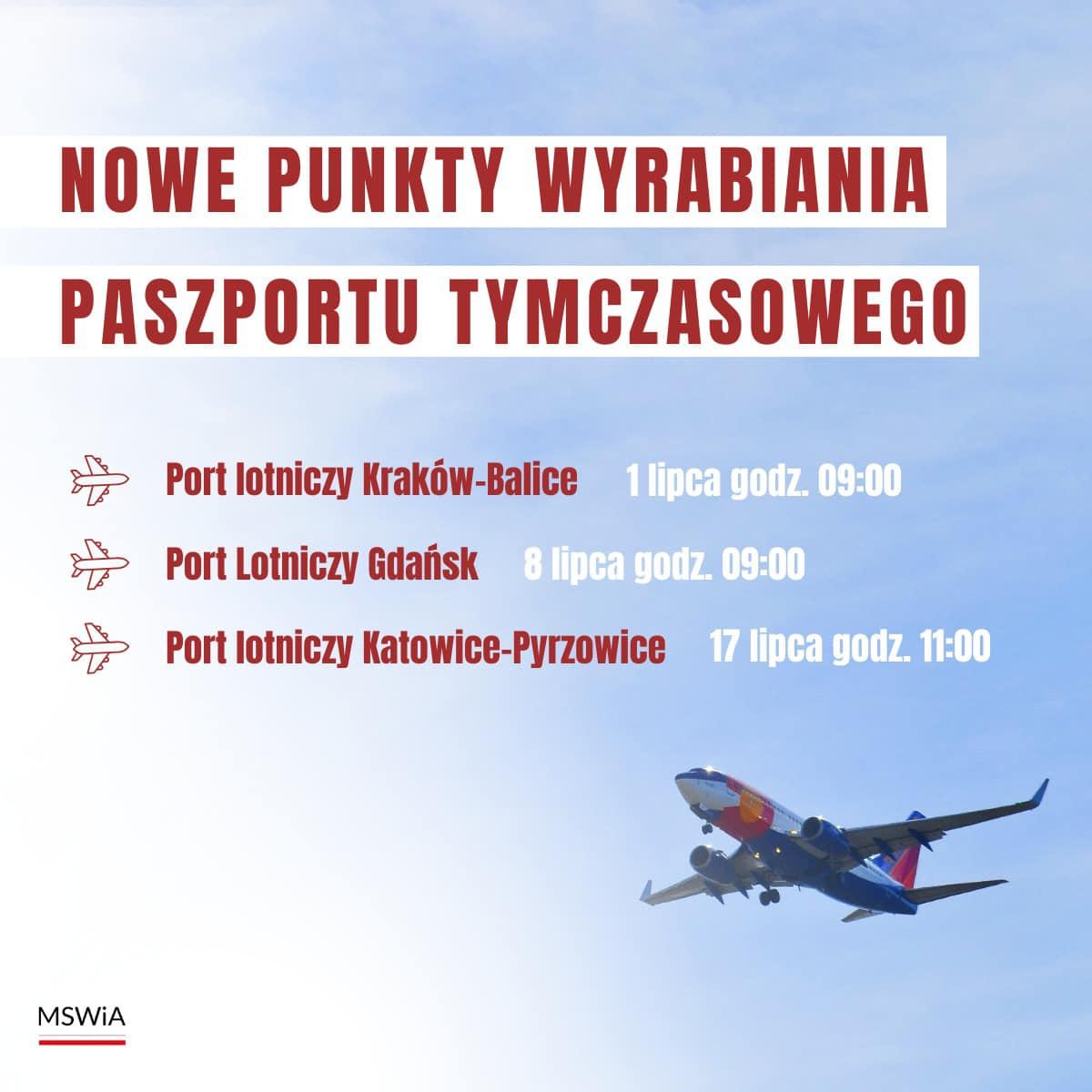 - Zachęceni sukcesem punktu tymczasowego wydawania paszportów na Lotnisku Chopina w Warszawie zdecydowaliśmy się otworzyć kolejne punkty. W lipcu ruszą trzy punkty: w Krakowie, Gdańsku i Katowicach