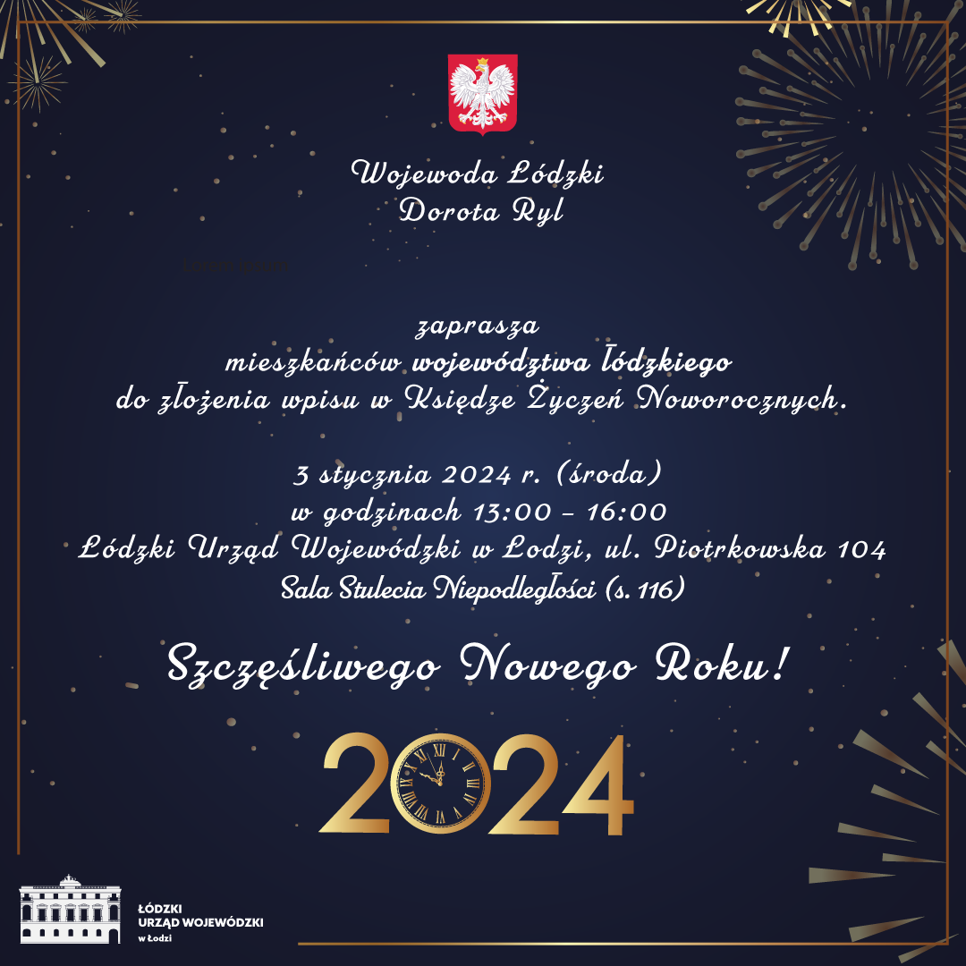 Wojewoda Łódzki Dorota Ryl zaprasza mieszkańców województwa łódzkiego do złożenia wpisu w Księdze Życzeń Noworocznych.
