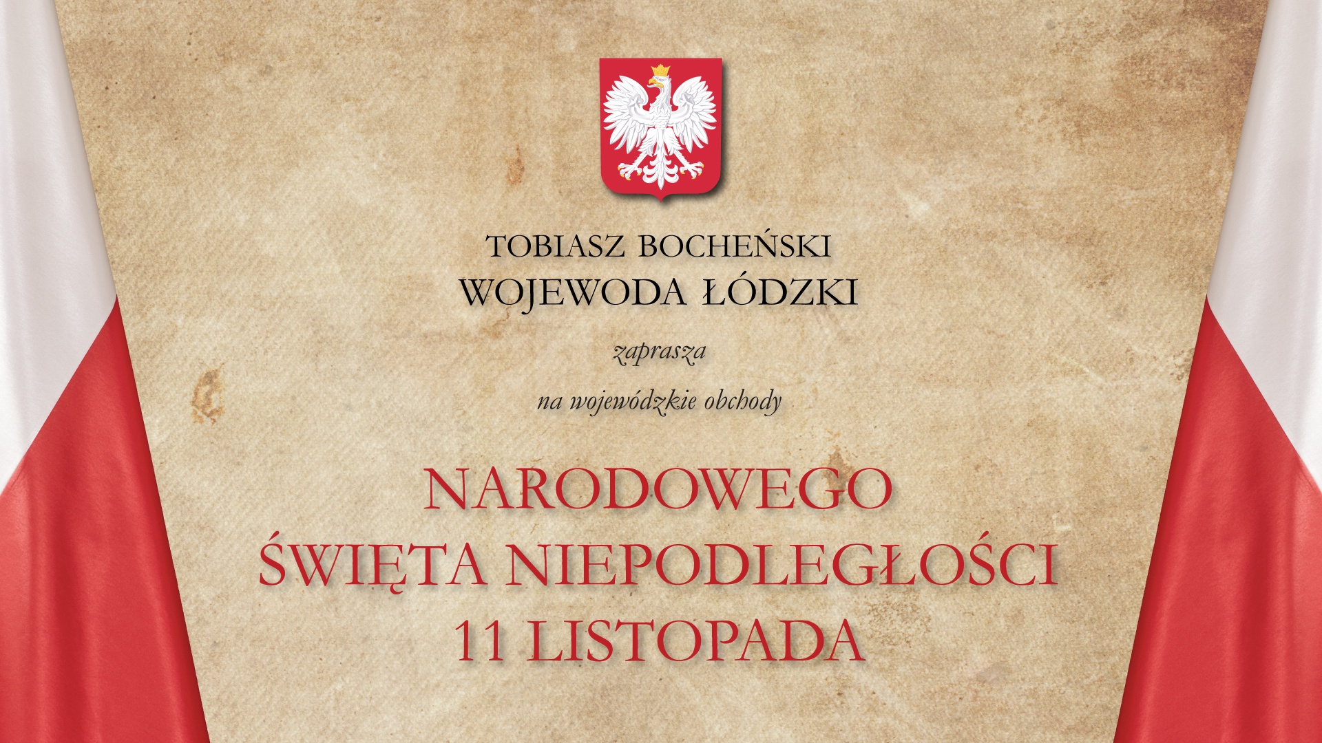 Wojewoda łódzki Tobiasz Bocheński zaprasza na wojewódzkie obchody Narodowego Święta Niepodległości 11 listopada, które odbędą się przed Bazyliką Archikatedralną w Łodzi.