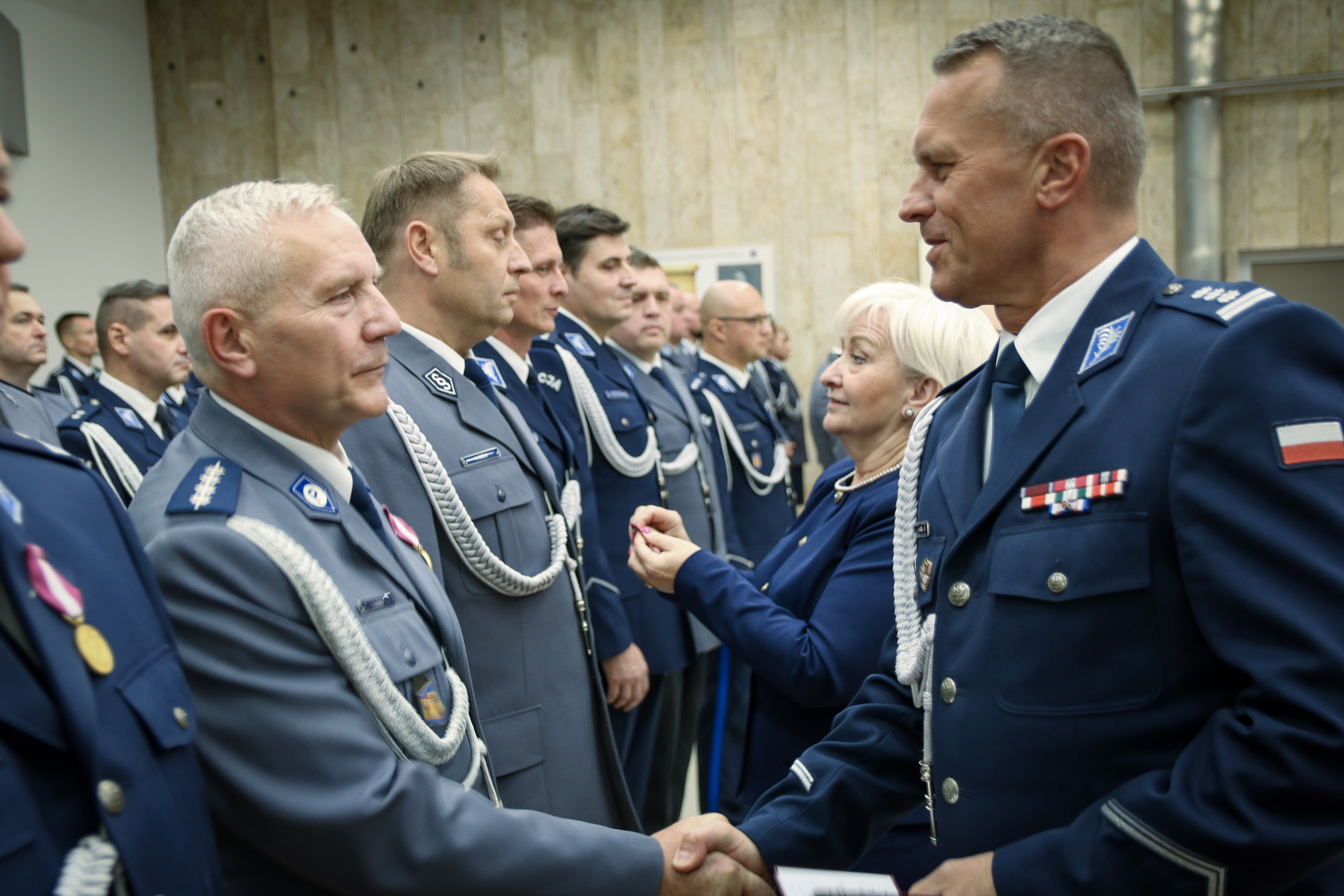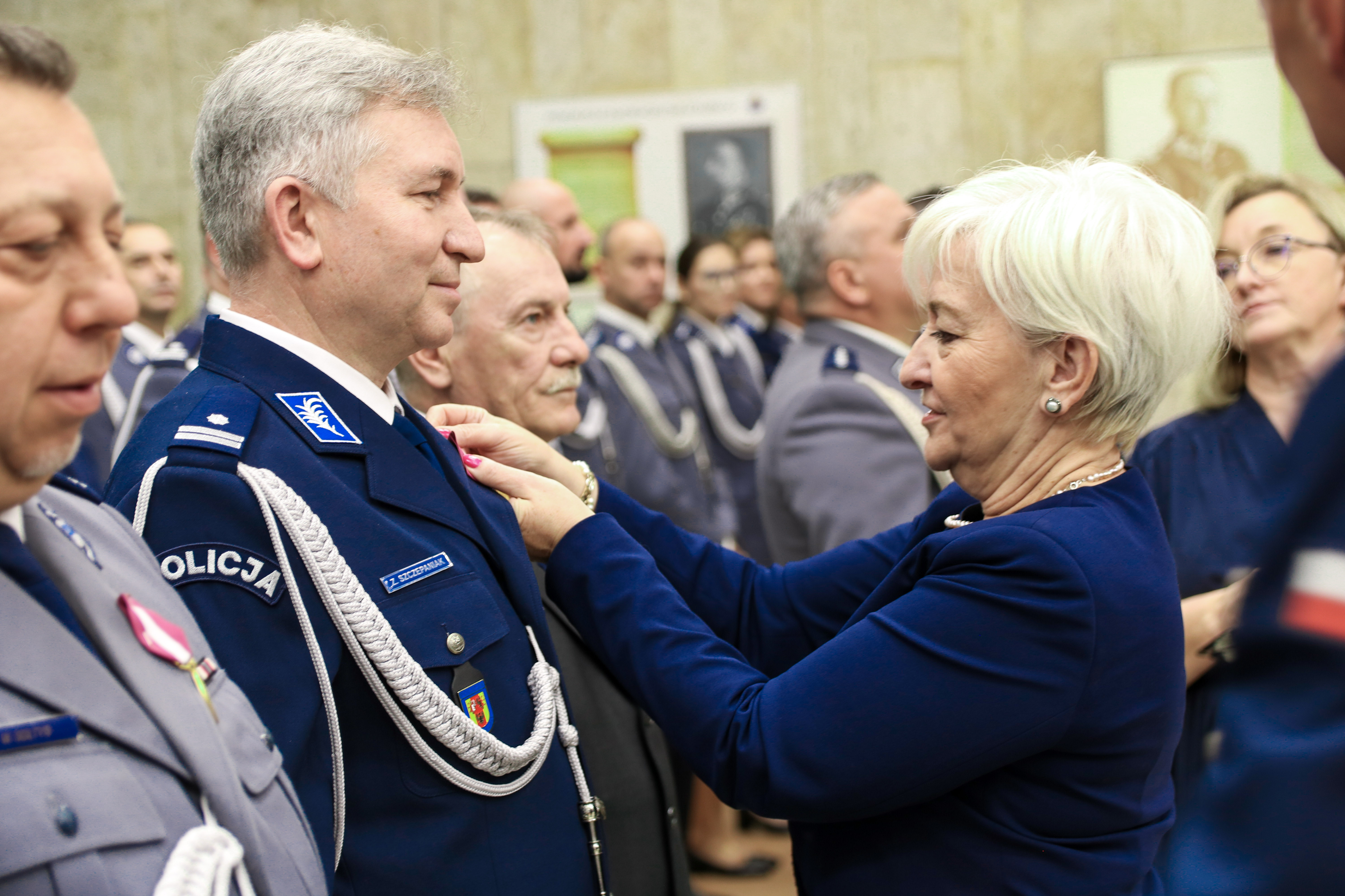 Odznaczenia, które dziś zostały wręczone, mają wyjątkową symbolikę. Medal „Za Długoletnią Służbę” odzwierciedla wartości którym hołdujecie, niezachwianą postawę i gotowość do działania. Dziękuję za lojalność, za czas poświęcony służbie, za wszelkie wyrzeczenia i rezygnację z wielu aspektów Waszego życia prywatnego na rzecz bezpieczeństwa publicznego. Słowa szczególnego uznania kieruję także do tych, którzy otrzymali dziś odznaczenie „Zasłużony Policjant". Jest ono świadectwem najwyższych standardów etycznych i moralnych, które towarzyszą codziennej służbie. Stanowicie przykład i inspirację, a dla wielu jesteście autorytetem oraz wzorem postępowania, jak również źródłem wiedzy oraz doświadczenia. Wasza postawa jest godna naśladowania, a dzisiejsze odznaczenie to wyraz wdzięczności za nieoceniony wkład w kształtowanie wizerunku Policji.