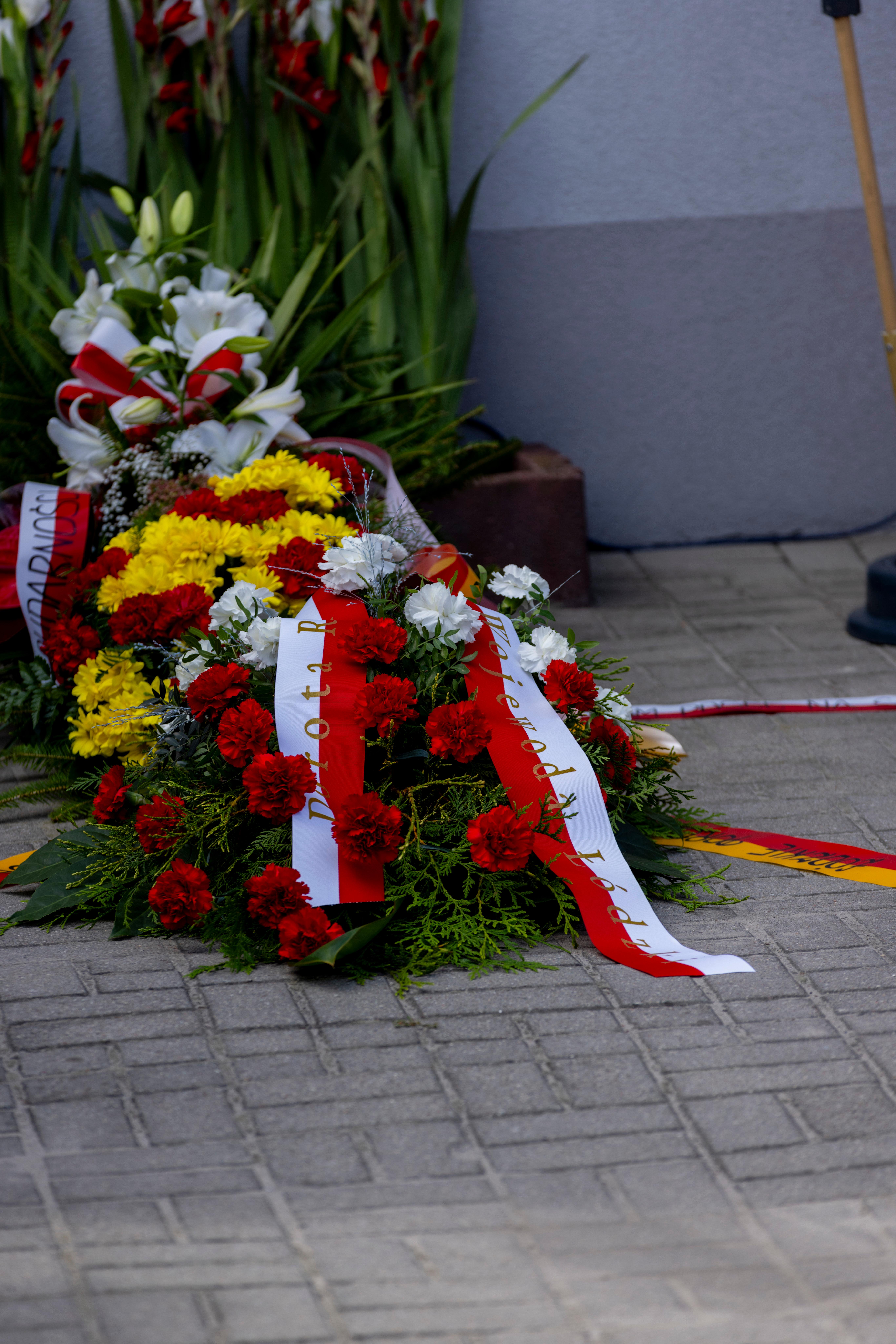 W imieniu wojewody łódzkiego Doroty Ryl - kwiaty pod pamiątkową tablicą upamiętniająca te wydarzenia złożył Maciej Kucharski, pełnomocnik wojewody ds. kombatantów oraz osób represjonowanych.