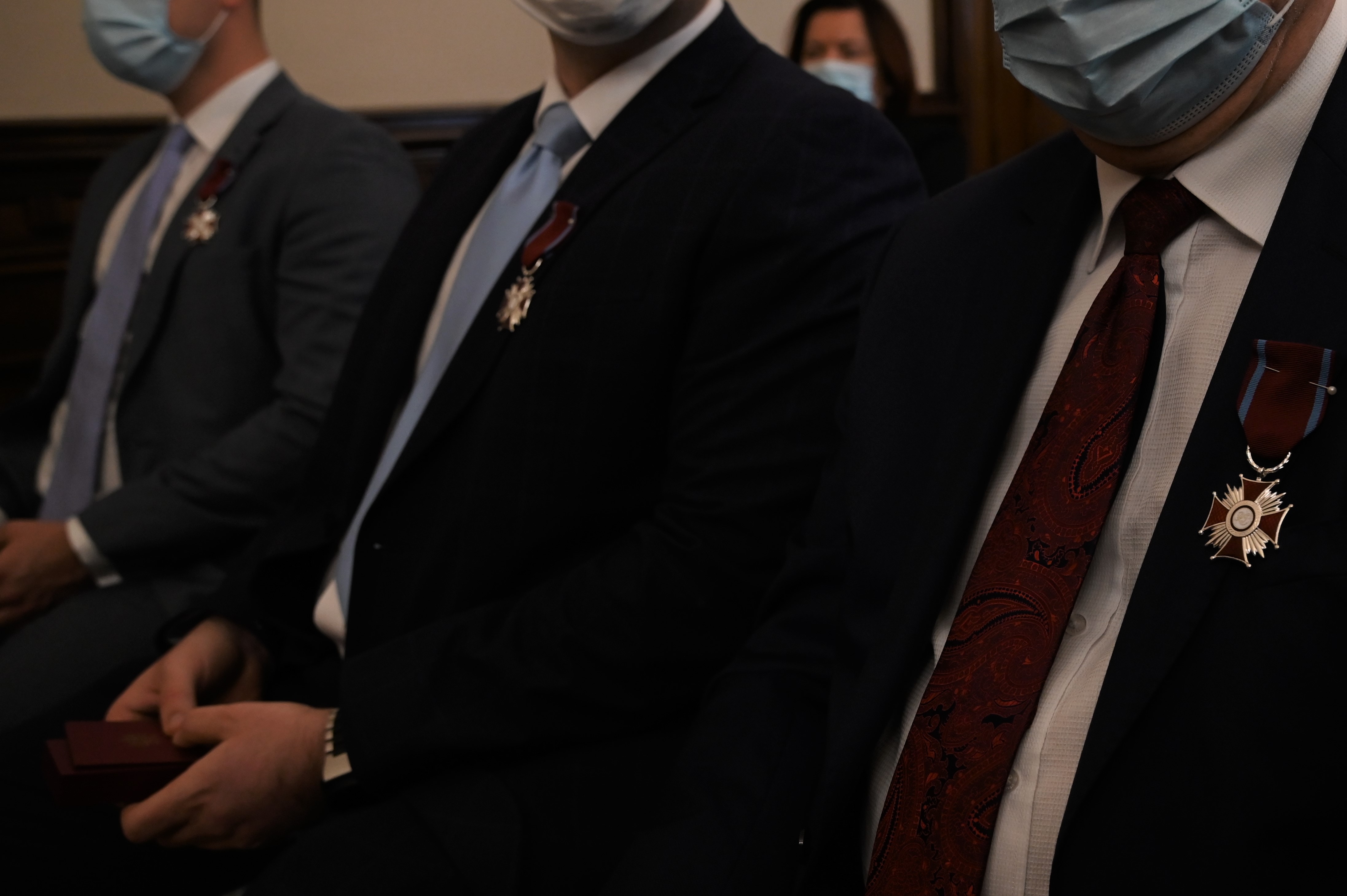 Gratuluję Wam odwagi, zaangażowania i poświęcenia. Wasza praca nie była wysiłkiem, który docelowo miał oznaczać poprawienie Waszej sytuacji, czy realizację innych osobistych celów. Pracowaliście na rzecz całego społeczeństwa, dlatego szczególnie zasługujecie na te odznaczenia i jest dla mnie honorem, że mogę je wręczyć