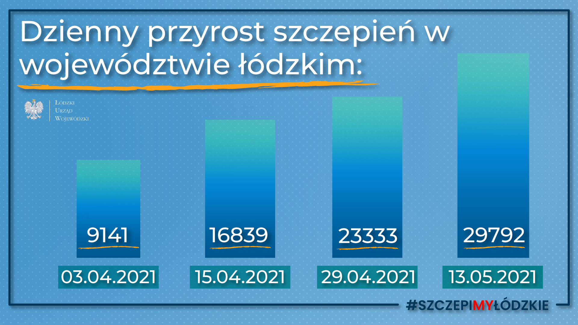 Do tej pory w Polsce wykonano ponad 18 mln szczepień. W pełni zaszczepionych jest prawie 5 mln 700 tys. osób. W naszym województwie wykonano ich już blisko 1 250 000. Aktualnie punkty szczepień w Łódzkiem na najbliższe 7 dni oferują 13 540 terminów, z kolei na najbliższe 30 dni 184 279.