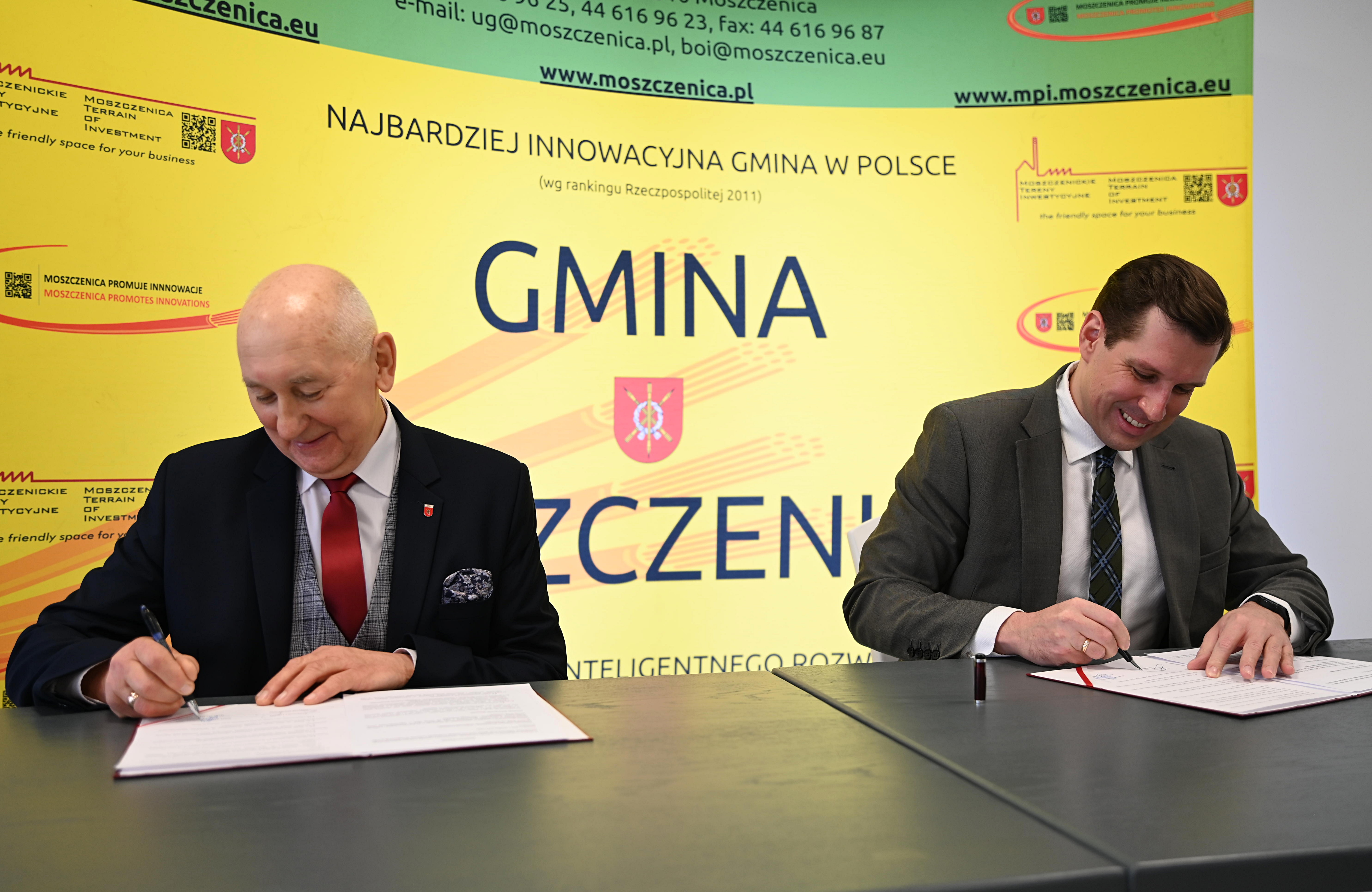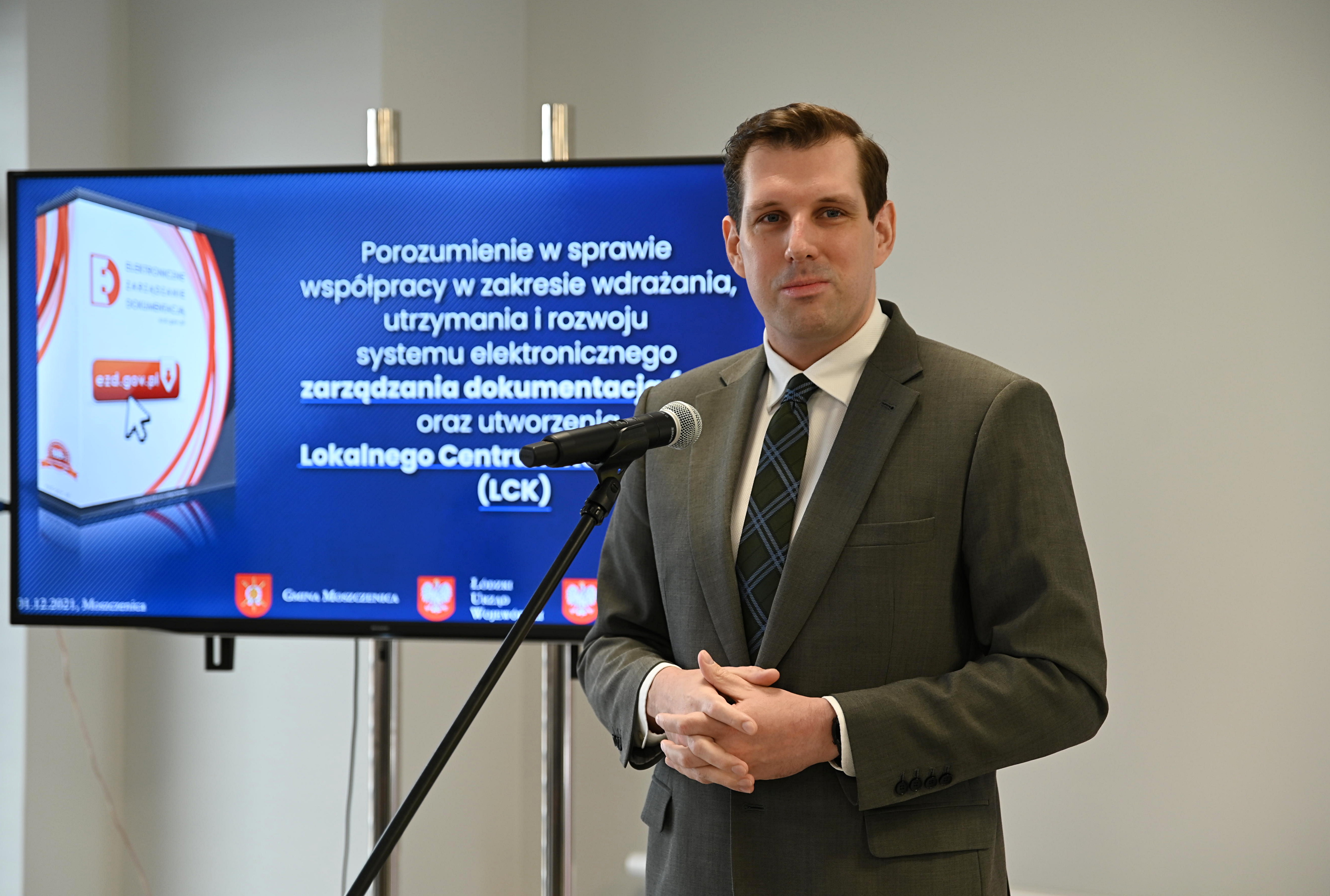 Dziś wojewoda łódzki Tobiasz Bocheński wraz z wójtem Gminy Moszczenica Marcelim Piekarkiem podpisali porozumienie w sprawie współpracy w zakresie wdrażania, utrzymania i rozwoju systemu elektronicznego zarządzania dokumentacją (EZD) oraz utworzenia Lokalnego Centrum Kompetencji (LCK).