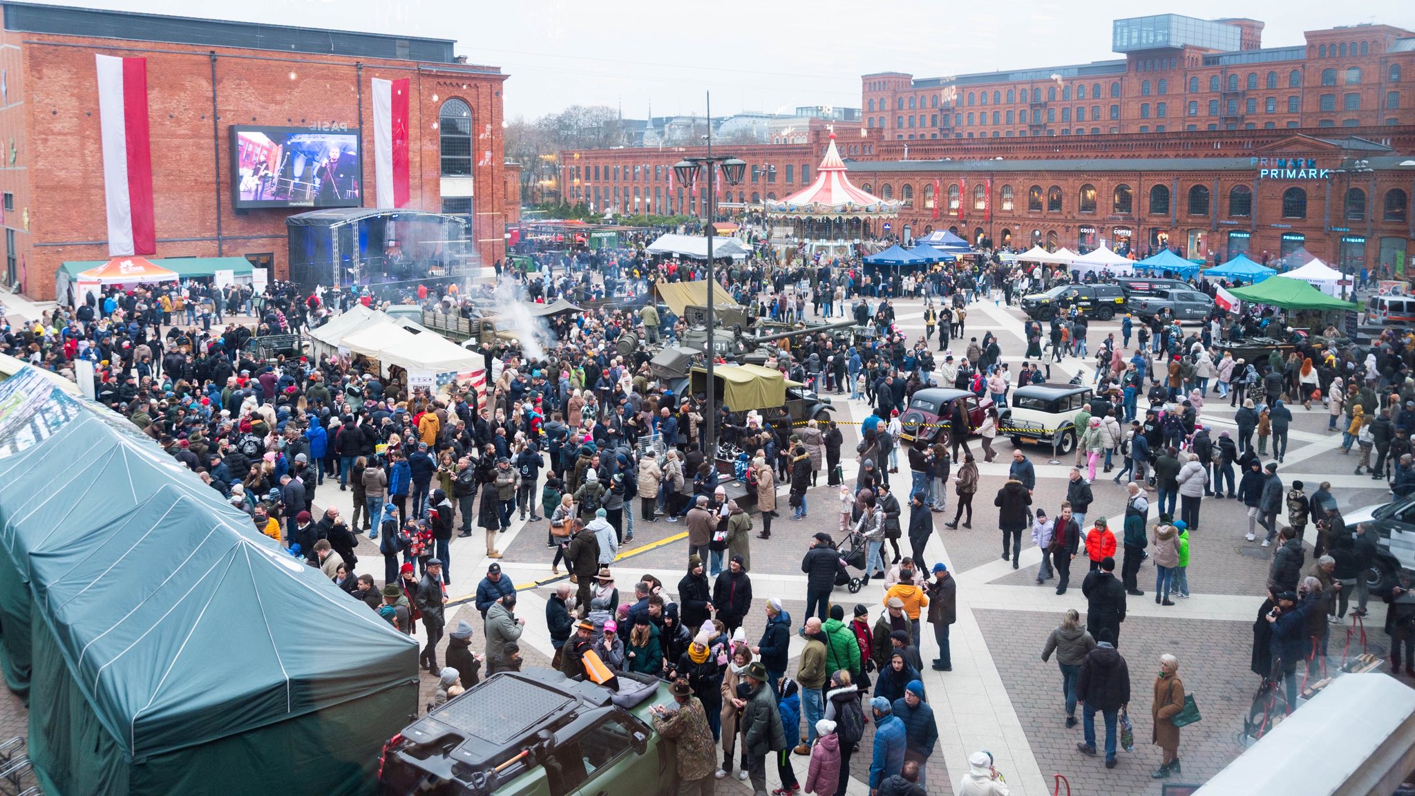 Na rynku w Manufakturze odbył się XIV Piknik Niepodległościowy, który zgromadził tłumy mieszkańców i gości. To wydarzenie pełne atrakcji dla całych rodzin – pokazy sprzętu wojskowego, spotkania z żołnierzami na co dzień służącymi w formacjach na terenie województwa łódzkiego. Punktualnie o godzinie 14:00 na scenie pojawił się sam marszałek Józef Piłsudski (w tej roli aktor Teatru Nowego w Łodzi - Gracjan Kielar).