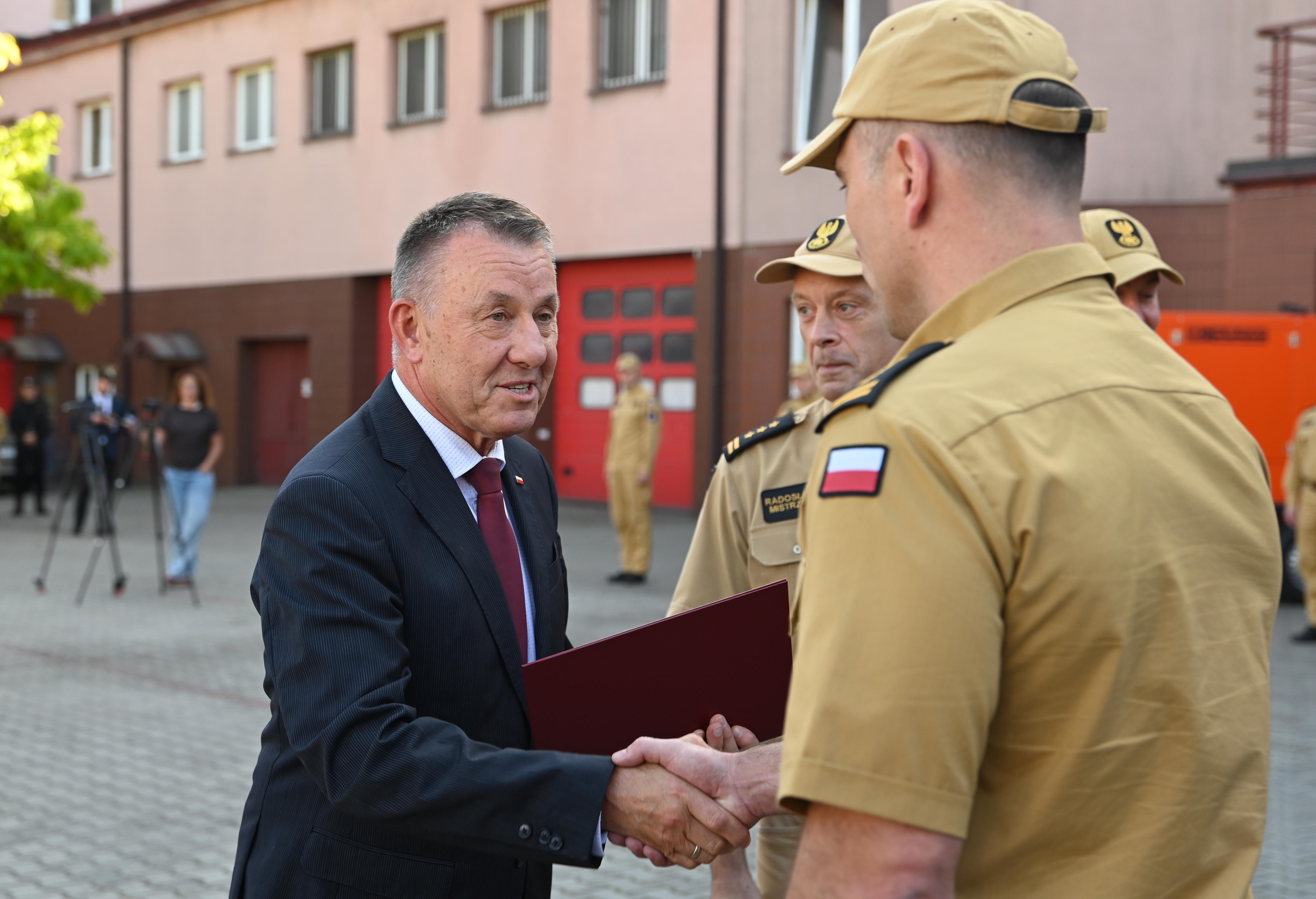 Cieszę się, że wszystkie jednostki miejskie i powiatowe naszego województwa dostaną dzisiaj nowe urządzenia. Jestem przekonany, że nowe agregaty prądotwórcze przyczynią się do poprawy bezpieczeństwa w regionie i pomogą strażakom jeszcze skuteczniej wykonywać swoją pracę. Dziękuję Państwu za ofiarność, poświęcenie i codzienną służbę na rzecz i dla dobra swoich lokalnych społeczności. Życzę, aby ogromne zaufanie i szacunek, jakim nasze społeczeństwo darzy strażaków i ich pracę, dawało Państwu prawdziwą radość i satysfakcję. Życzę bezpiecznej służby, skutecznych interwencji i szczęśliwych powrotów z akcji