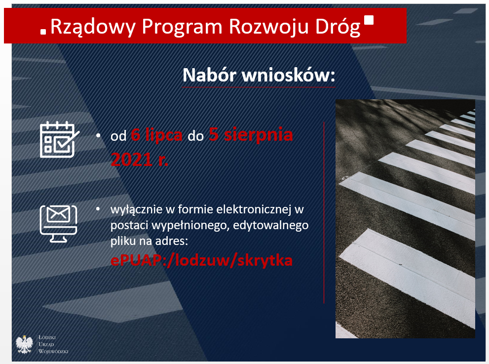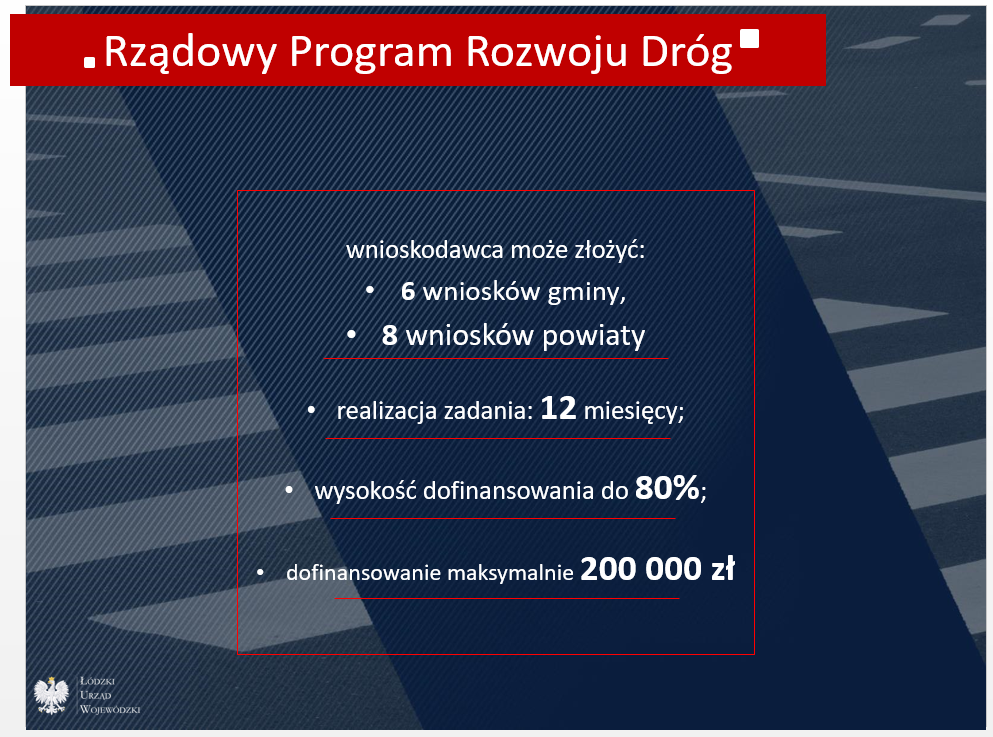 Rządowy Fundusz Rozwoju Dróg ma na celu poprawę bezpieczeństwa ruchu drogowego i parametrów technicznych lokalnej sieci drogowej oraz zwiększenie atrakcyjności i dostępności terenów inwestycyjnych.