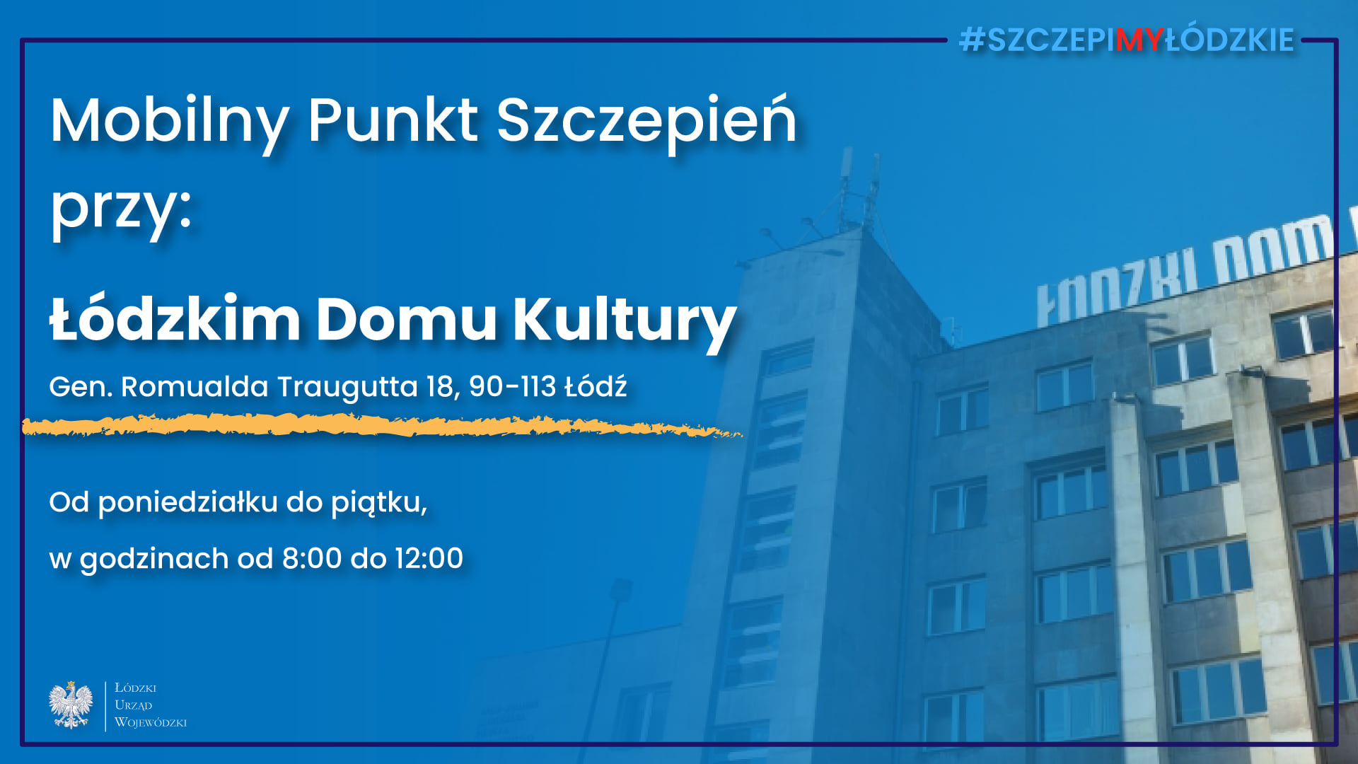 W Łódzkiem wykonaliśmy już ponad 2 mln szczepień. We współpracy z Wojewódzką Stacją Ratownictwa Medycznego w Łodzi uruchomiliśmy również kolejny mobilny punkt szczepień. Przy Łódzkim Domu Kultury od poniedziałku do piątku w godzinach 8:00-12:00 każdy chętny będzie mógł się zaszczepić.