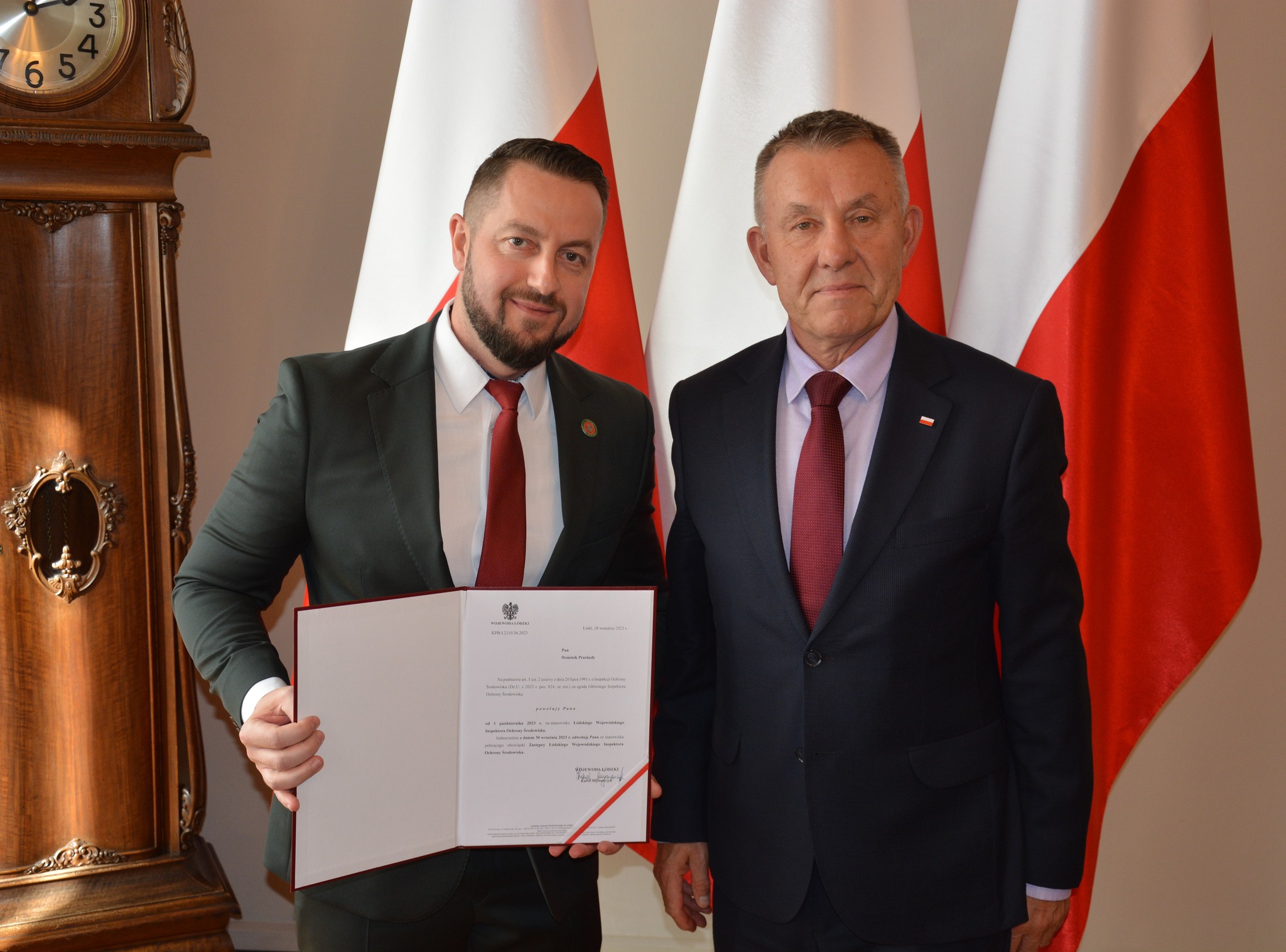 Wojewoda Łódzki Karol Młynarczyk powołał Dominika Przelazłego na stanowisko Łódzkiego Wojewódzkiego Inspektora Ochrony Środowiska.