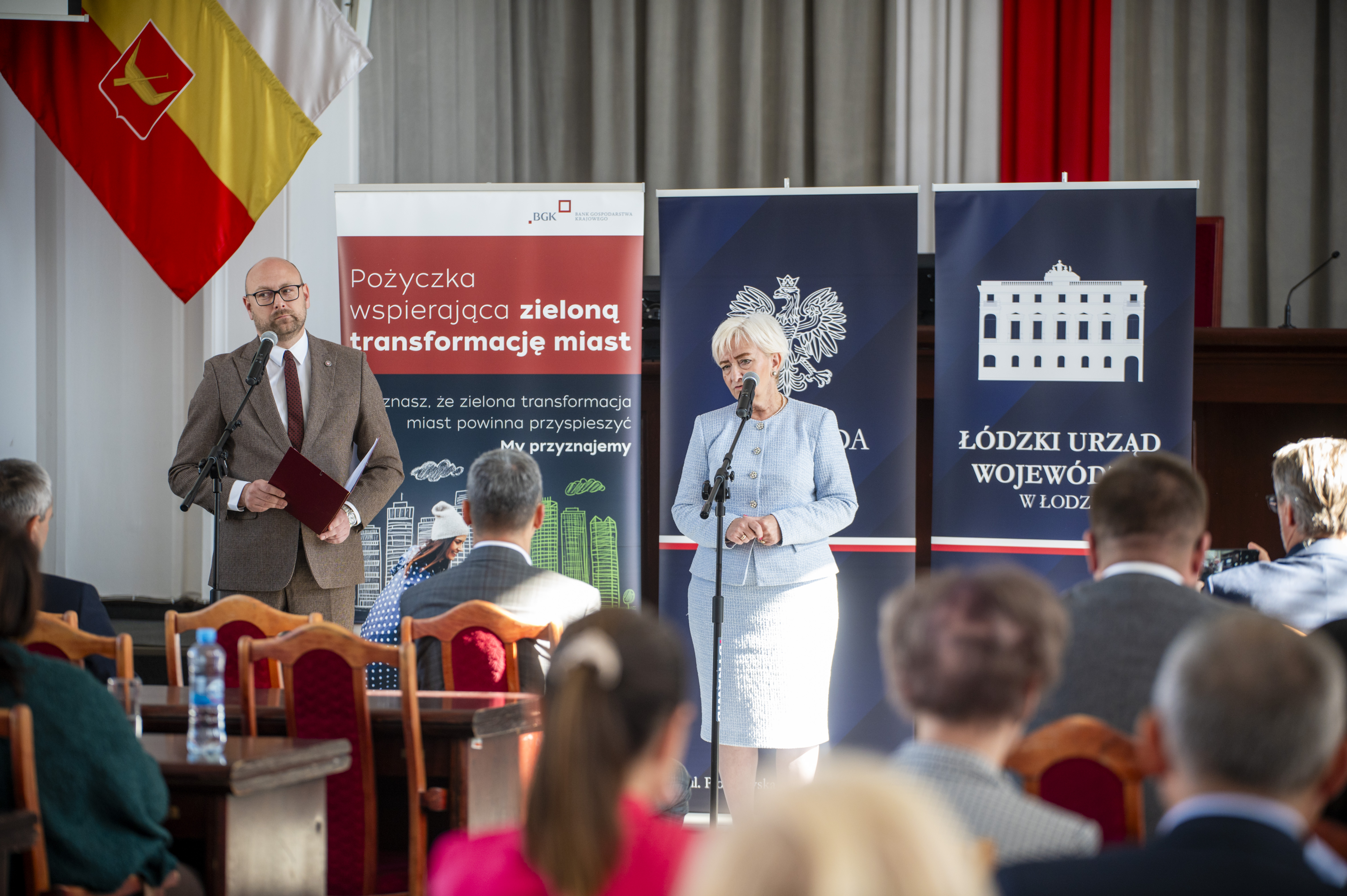 Na zaproszenie wojewody łódzkiego Doroty Ryl oraz Banku Gospodarstwa Krajowego, odbyło się spotkanie dotyczące „Pożyczki wspierającej zieloną transformację miast”, realizowanej ze środków Krajowego Planu Odbudowy i Zwiększenia Odporności (KPO). Z samorządowcami regionu łódzkiego spotkali się: wojewoda łódzki Dorota Ryl, wiceprezes Banku Gospodarstwa Krajowego - Mateusz Szczurek, dyrektor łódzkiego oddziału BGK - Marcin Pawlik.