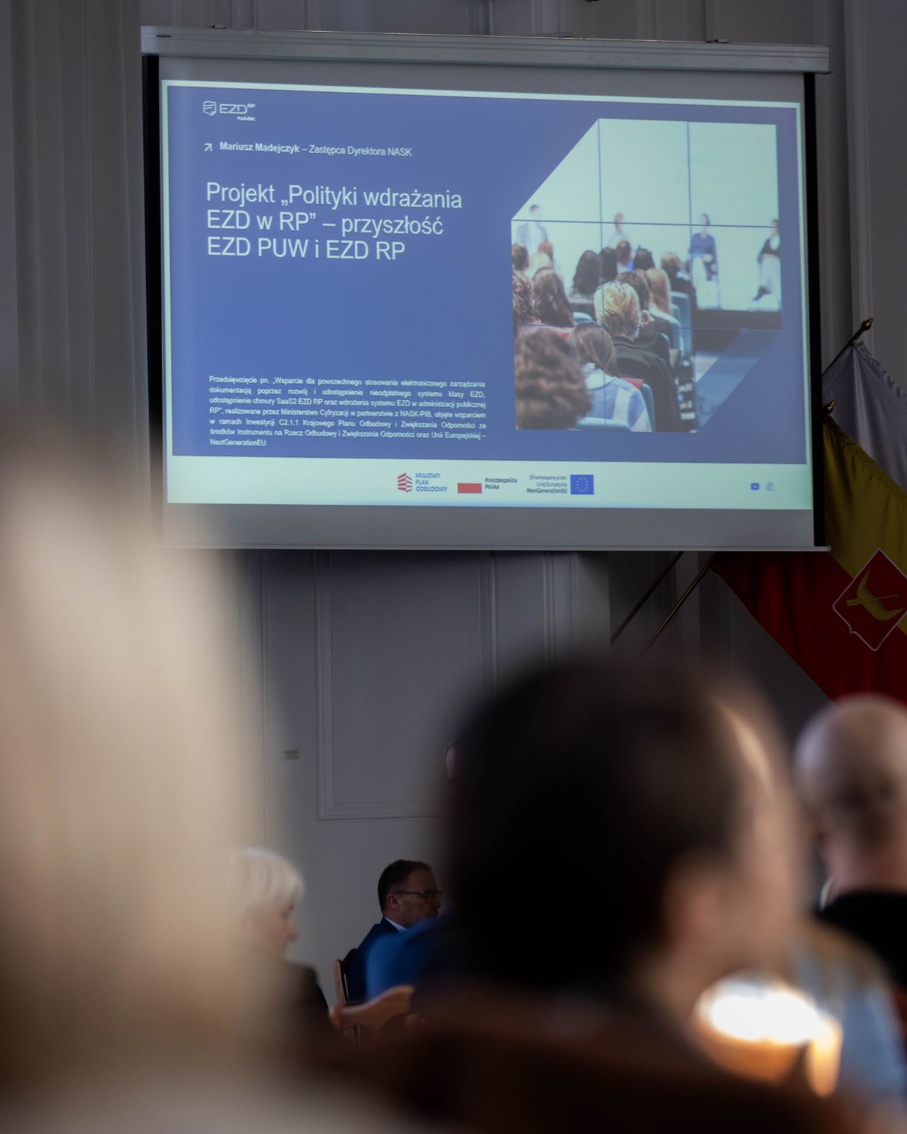 Podczas spotkania eksperci przedstawili założenia projektu „Polityki Wdrażania EZD w RP”, który zakłada wprowadzenie obowiązku korzystania z systemów klasy EZD w jednostkach realizujących zadania publiczne. Rozmawiano o korzyściach z wdrożenia systemu, jego modelach oraz wsparciu oferowanym przez NASK.