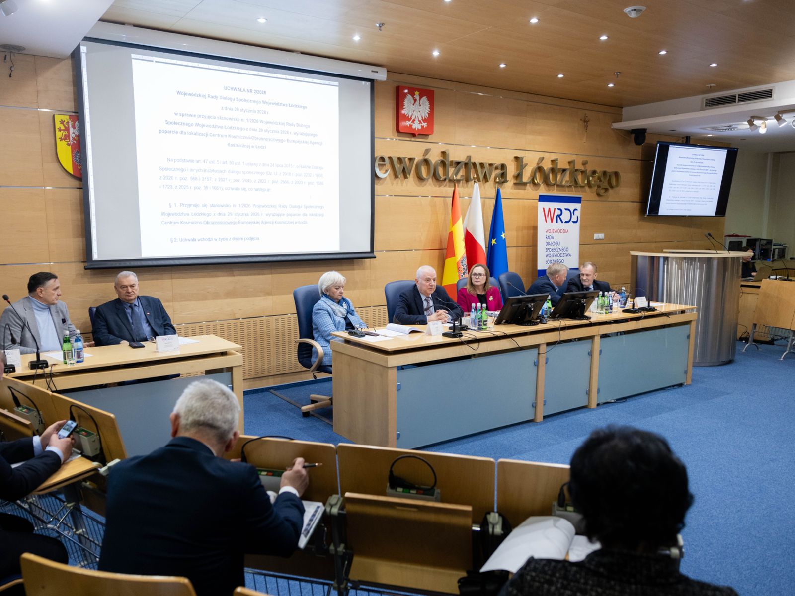 Podczas obrad jednogłośnie przyjęto uchwałę w sprawie stanowiska wyrażającego poparcie dla lokalizacji Centrum Kosmiczno-Obronnościowego Europejskiej Agencji Kosmicznej w Łodzi. Członkowie Wojewódzkiej Rady Dialogu Społecznego zwrócili uwagę na potencjał miasta, wynikający m.in. z jego dogodnej lokalizacji, silnego zaplecza akademickiego i kadrowego oraz działalności znaczących podmiotów branży kosmicznej w regionie.