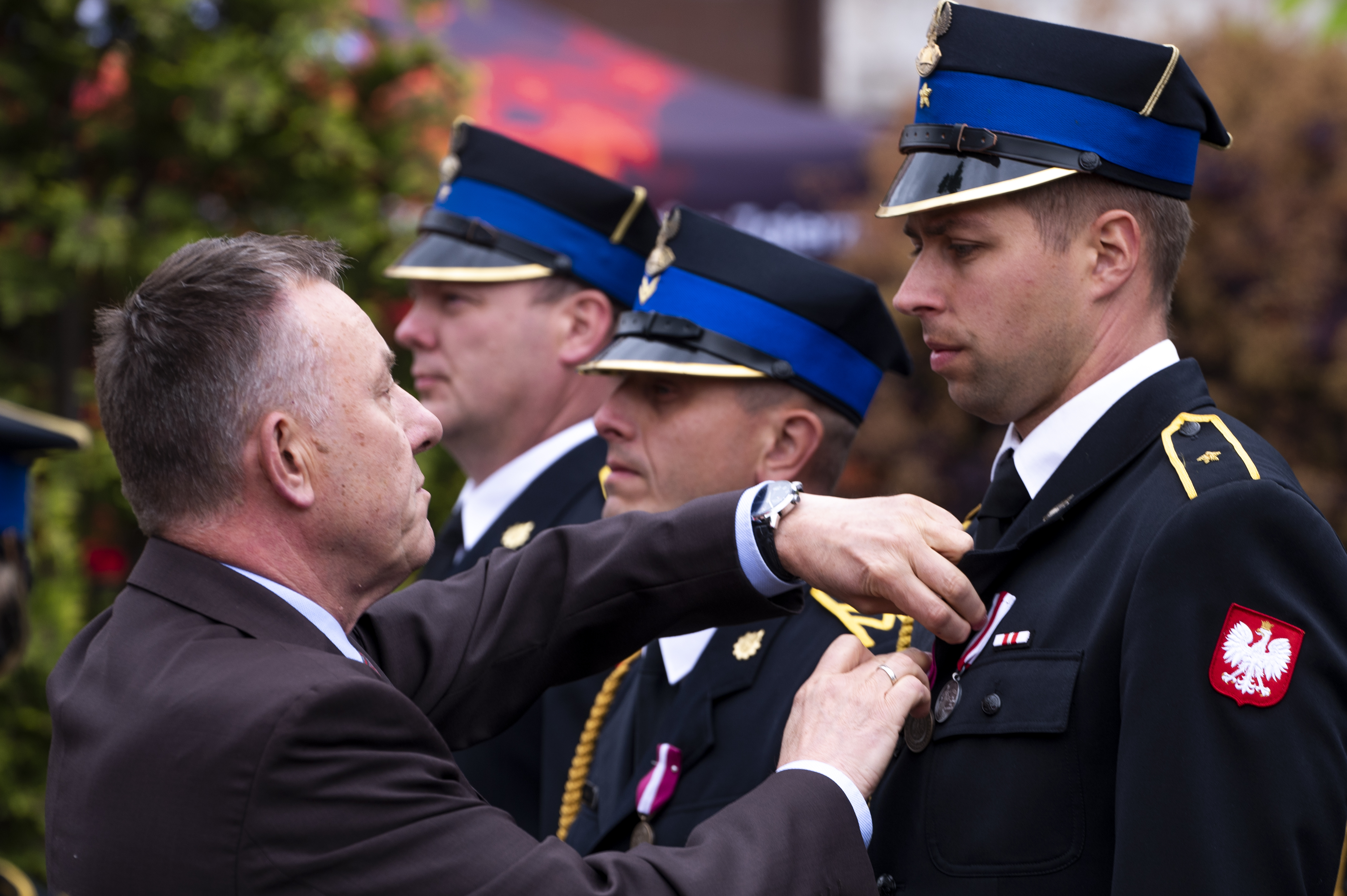 W trakcie uroczystej zbiórki z okazji Dnia Strażaka Wojewoda Łódzki wręczył w imieniu Prezydenta RP Medale za Długoletnią Służbę oraz Krzyże św. Floriana.