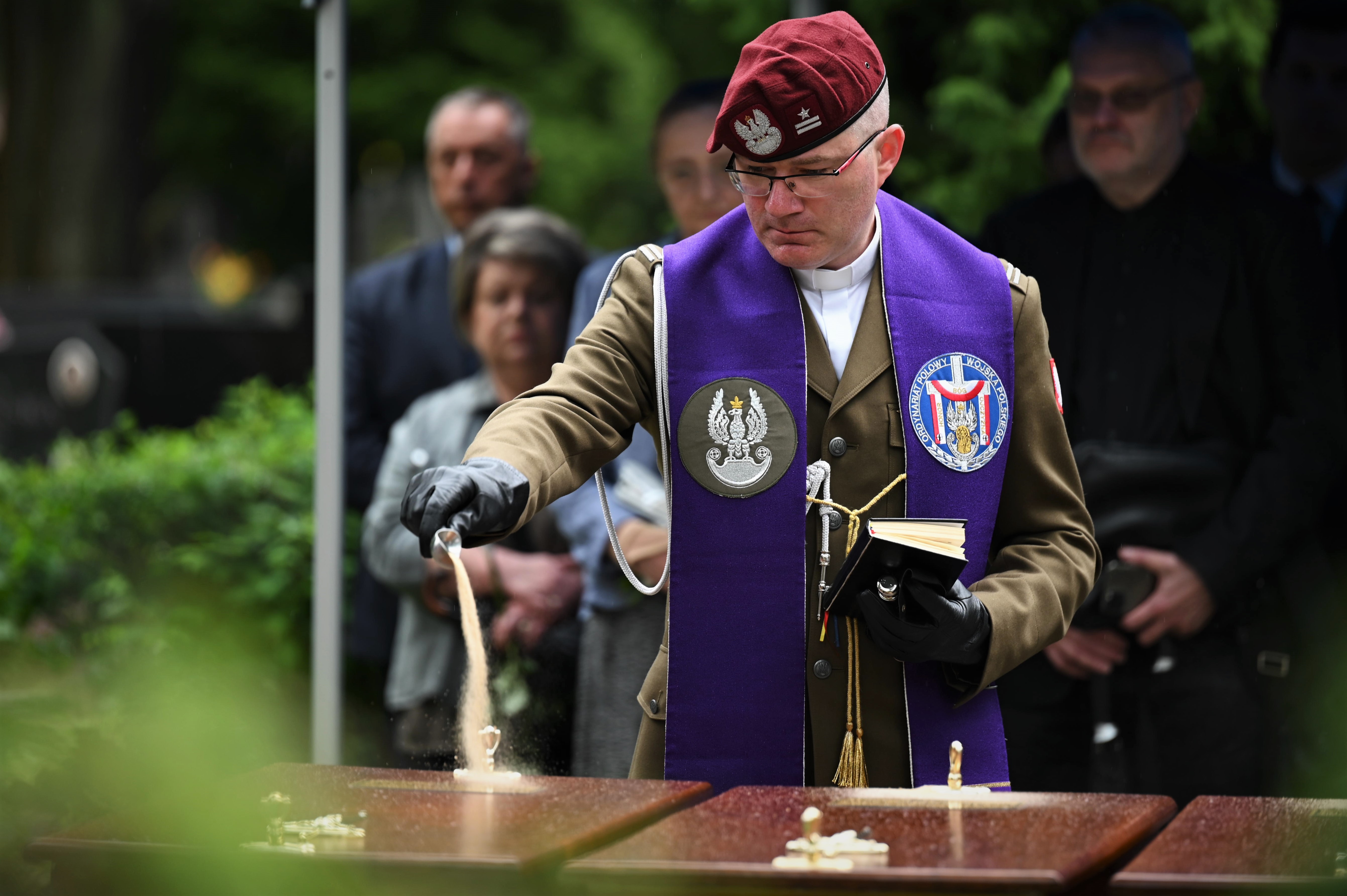 W Kaplicy Cmentarza Komunalnego Doły w Łodzi zakończyły się uroczystości pogrzebowe ofiar terroru komunistycznego ekshumowanych przez IPN - Stanisława Dolewskiego oraz dwóch żołnierzy podziemia zbrojnego Mariana Sobolczyka i Jana Majewskiego ps. Śmiały.