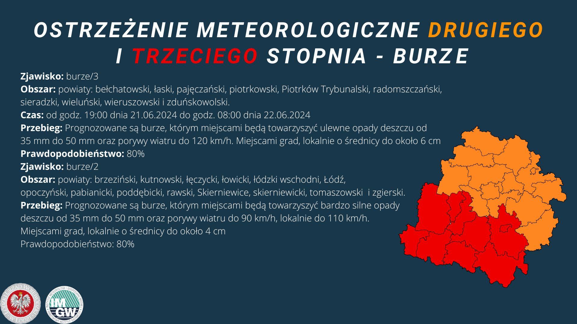 Ostrzeżenie meteorologiczne II i III stopnia dotyczące burz