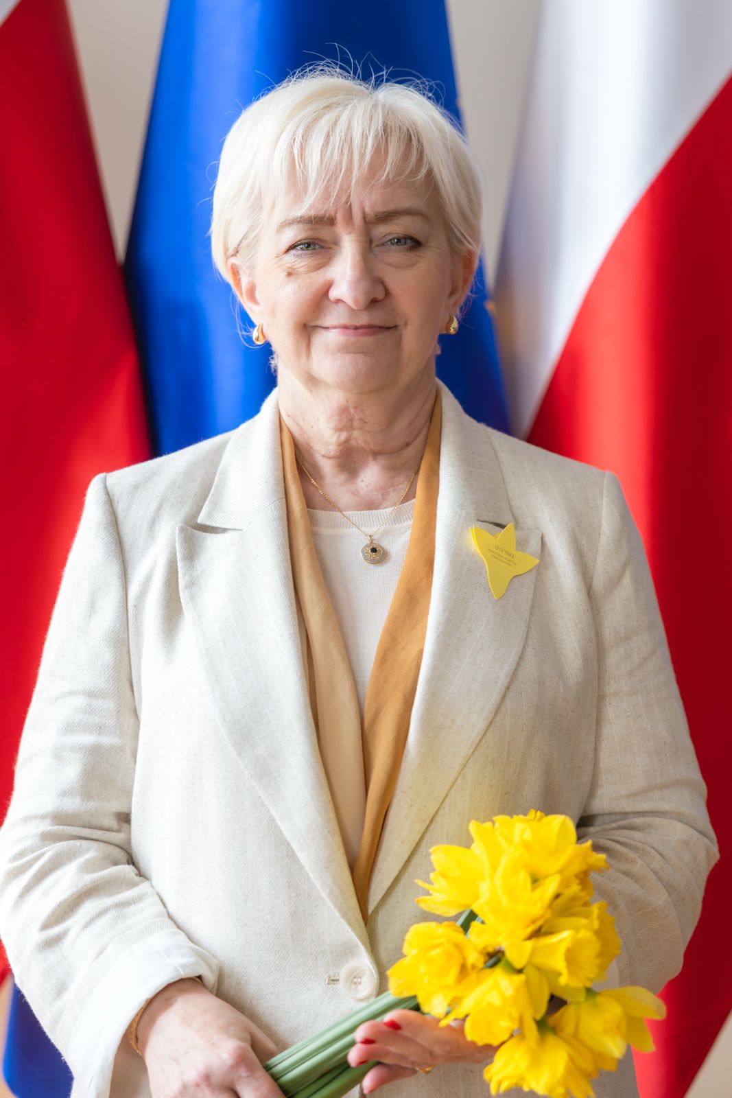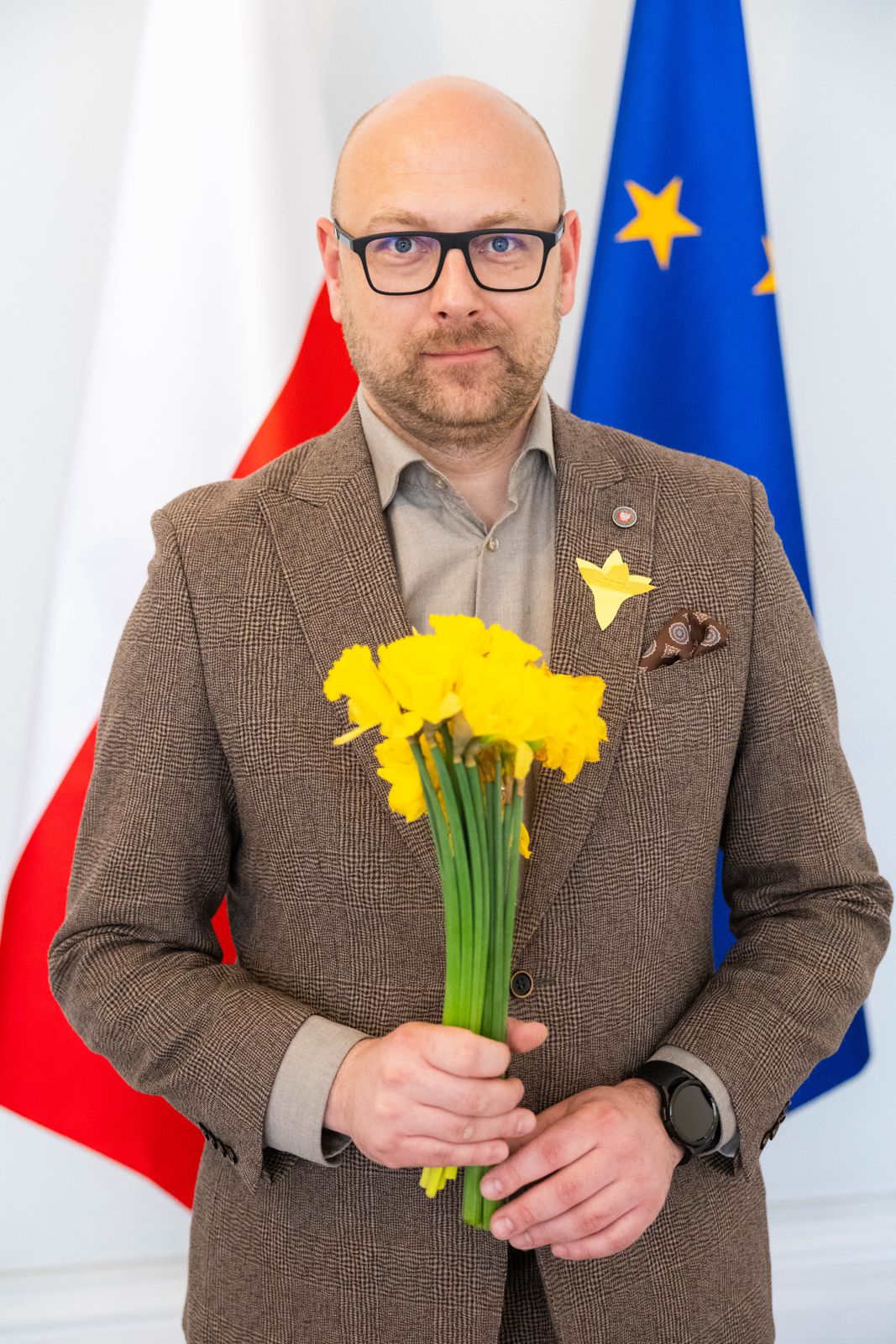 Wojewoda łódzki Dorota Ryl oraz Tobiasz Puchalski, dyrektor Biura Wojewody i rzecznik prasowy, biorą udział w Akcji Żonkile.