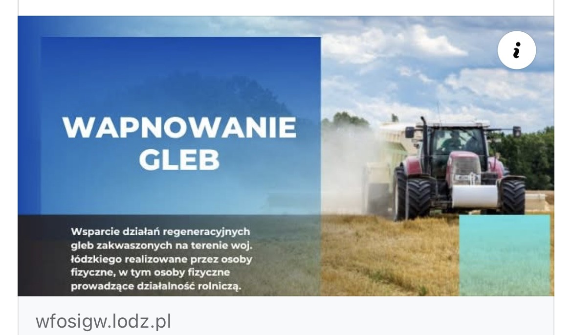 Uprzejmie informujemy, że Wojewódzki Fundusz Ochrony Środowiska i Gospodarki Wodnej w Łodzi przedłużył termin naboru wniosków w ramach Programu Priorytetowego „Wapnowanie gleb” do 30 września 2025 roku lub do wyczerpania środków.