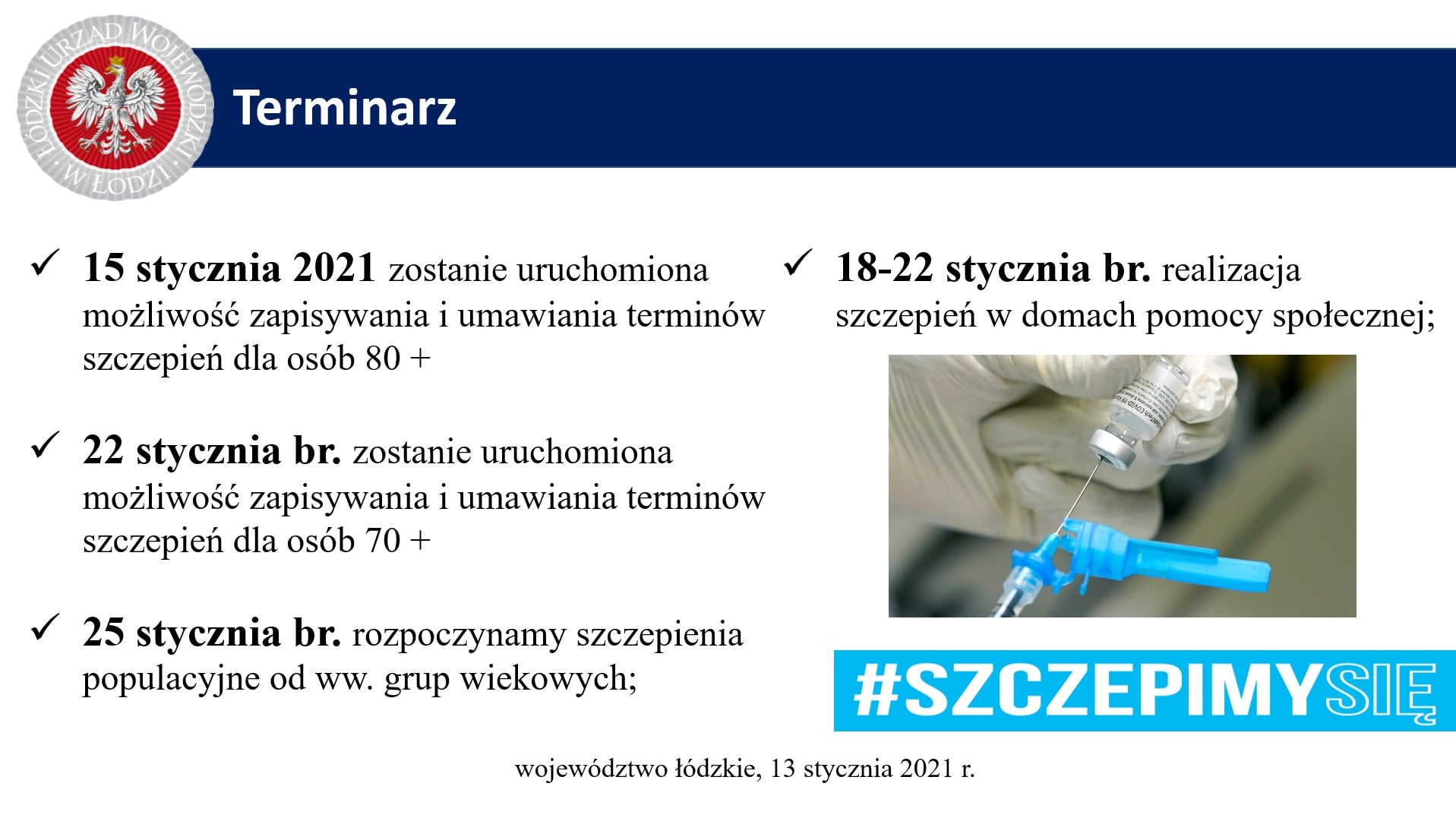 - Zbliża się etap, w którym szczepienia będą kierowane do seniorów 60 plus, nauczycieli, pensjonariuszy Domów Pomocy Społecznej i służb mundurowych. Kolejny etap to osoby poniżej 60 roku życia z chorobami przewlekłymi i osób, które zapewniają podstawową działalność państwa. W następnym etapie będą skierowane szczepienia do przedsiębiorców oraz pracowników z sektorów na mocy rozporządzeń. Aż w końcu rozpoczną się szczepienia dla całej populacji. Szczepienia są wykonywane przez 2 rodzaje podmiotów: szpitale węzłowe, których w naszym województwie jest 32 oraz przez Zakłady Opiekuńczo Lecznicze.